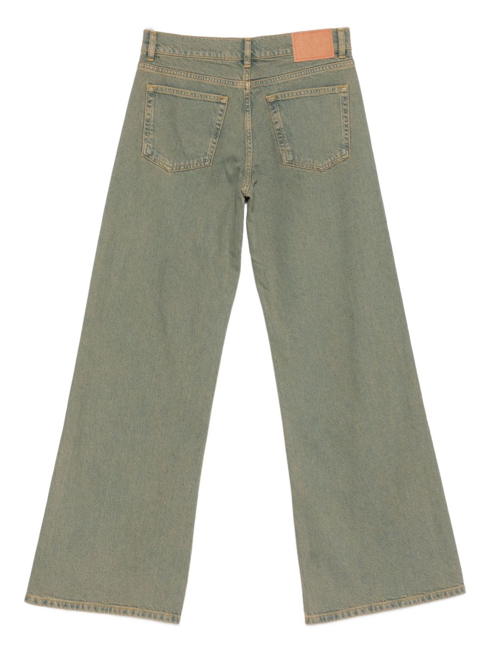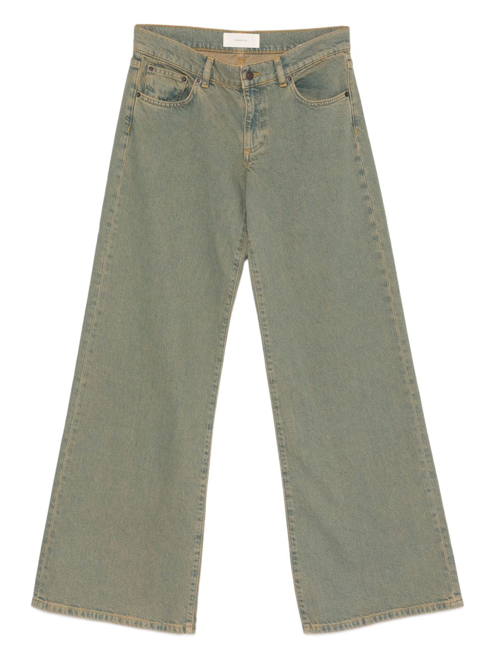 Beige cotton Kyoto jeans by Jeanerica with waistband with belt loops, a front button and zipper closure, a wide leg, and a straight hem.