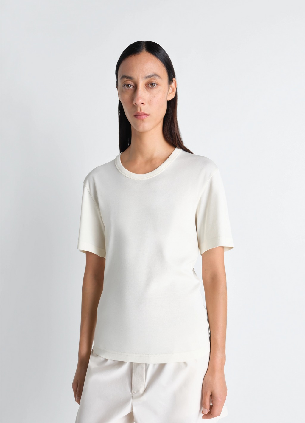 T-shirt crema di Lemaire in cotone con girocollo, design a coste, manica corta e orlo dritto.