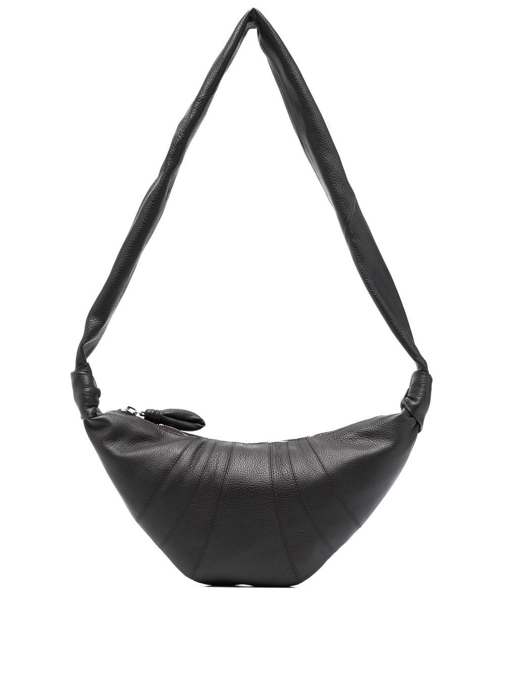 Dark brown (Dark Chocolate) Croissant Small bag by Lemaire in leather with a glossy finish, zip closure, single handle, external side pocket with zip, and tone-on-tone stitching.