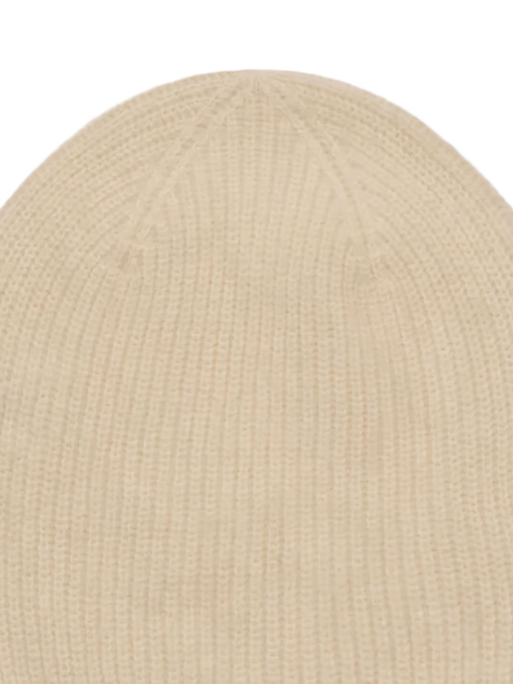 Ivory Flyn beanie by LouLou De Saison in cashmere with ribbed design.