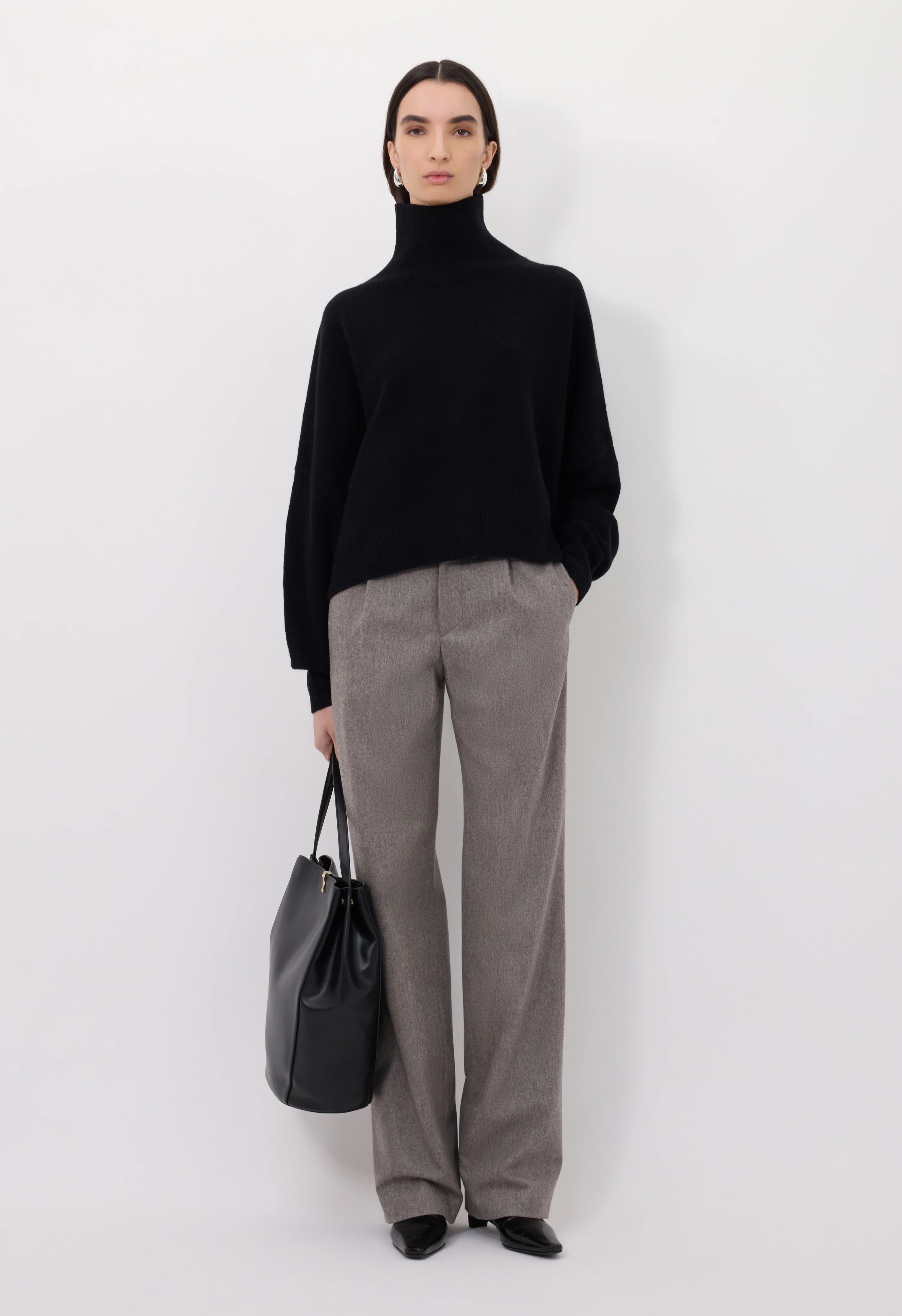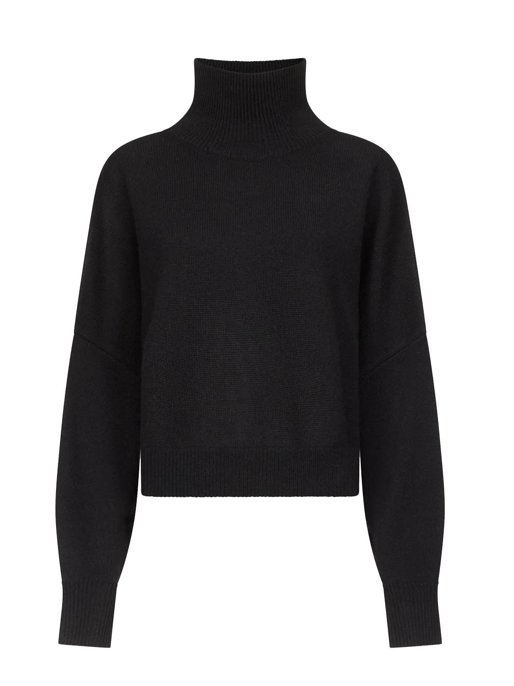 Luke black sweater by LouLou De Saison in wool with a high neck, long sleeves, ribbed hem, and ribbed cuffs.