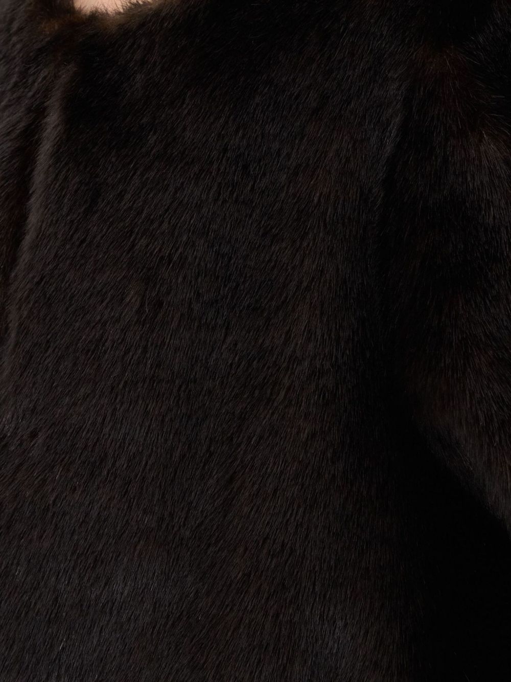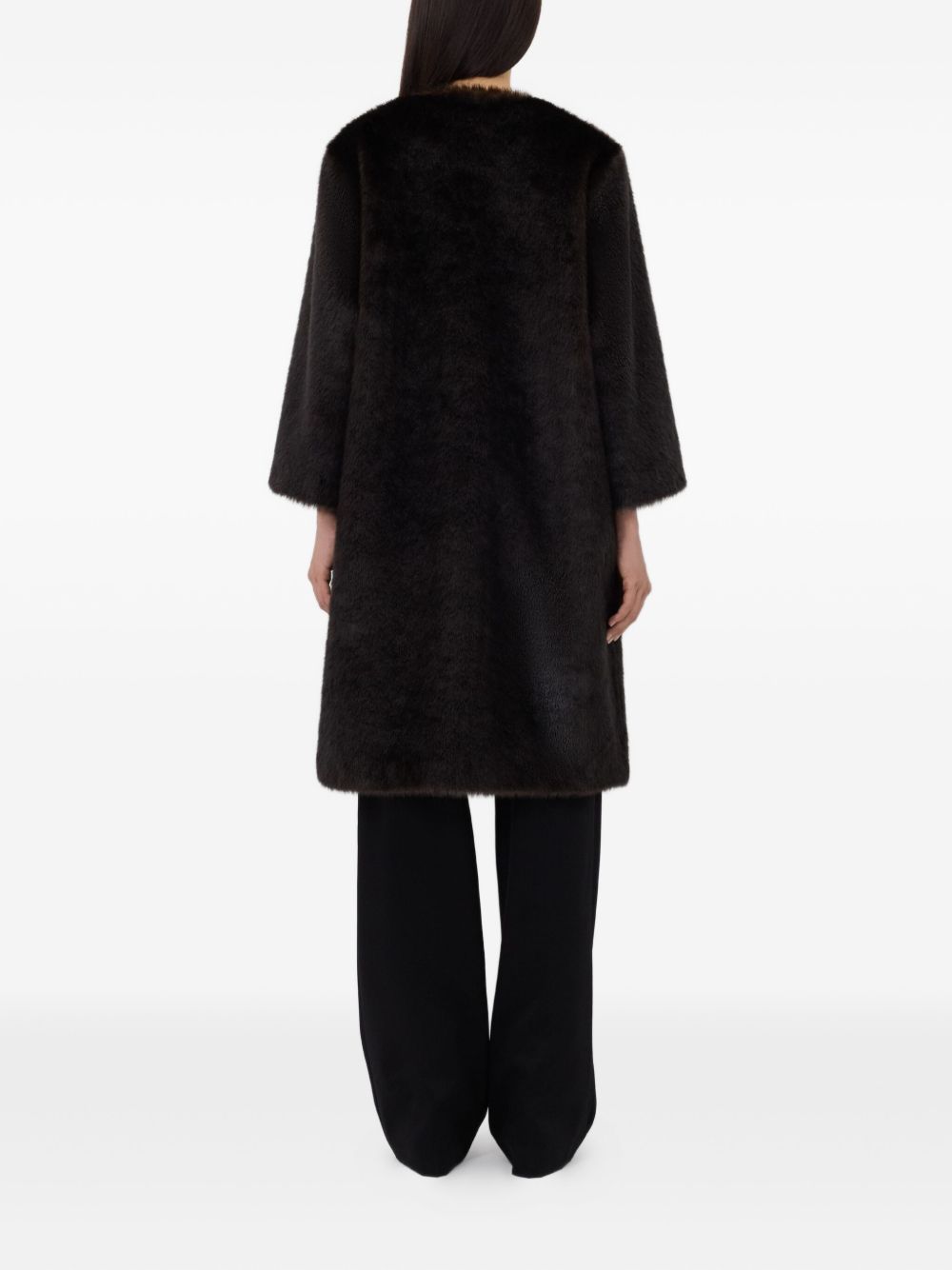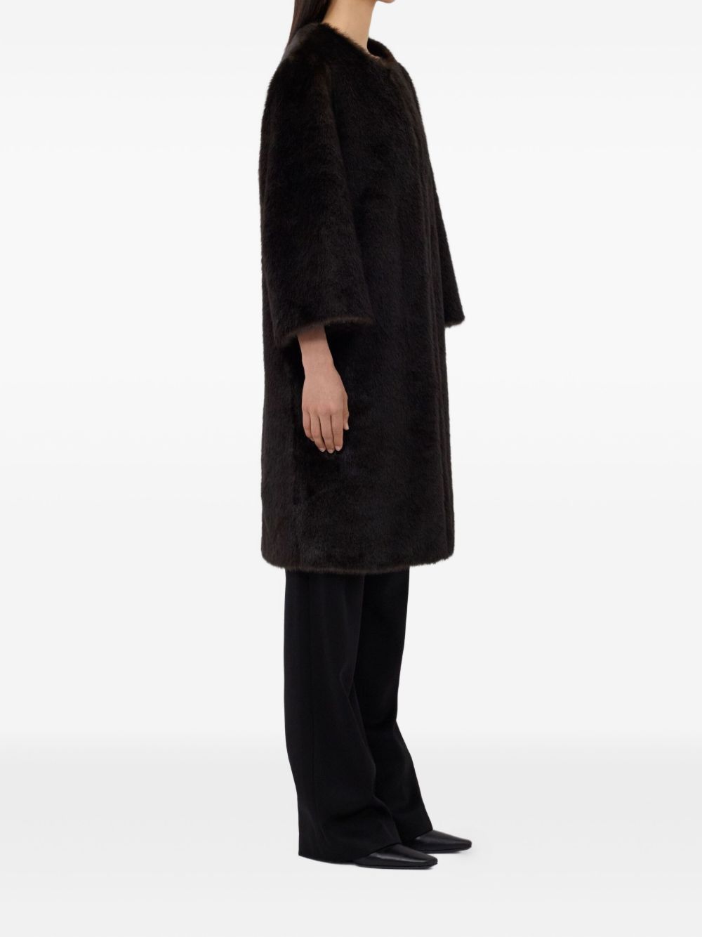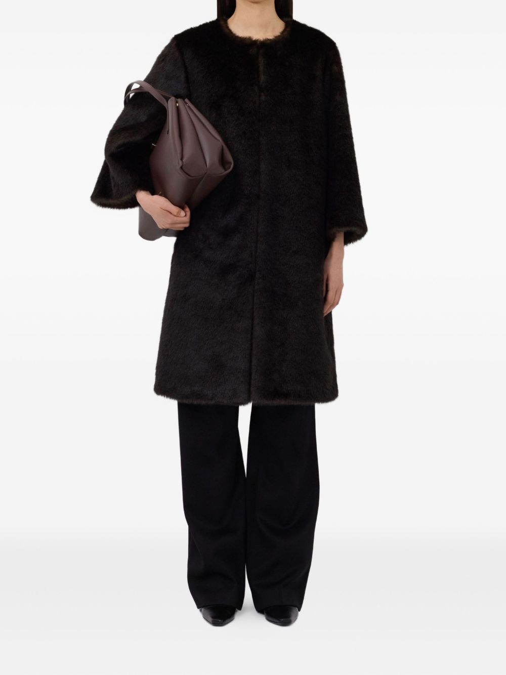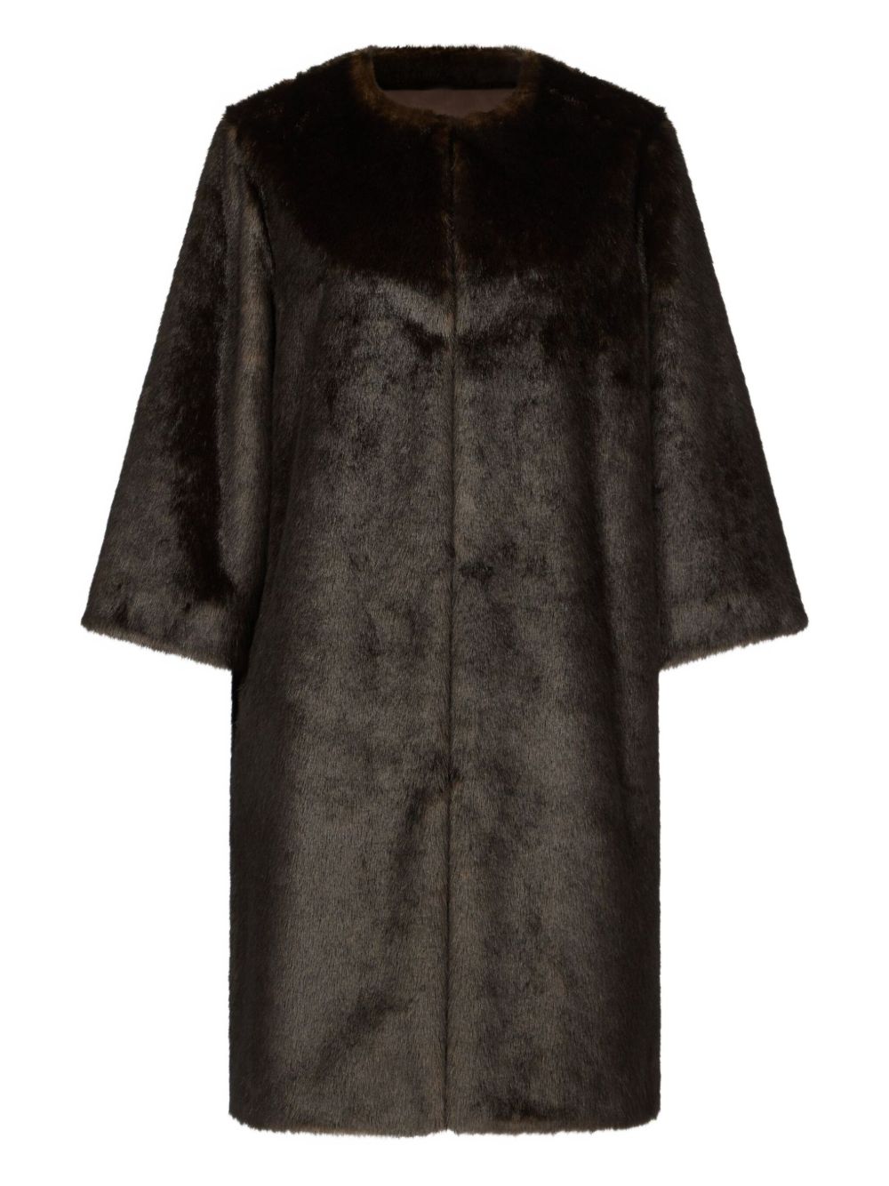 Dark brown Morre coat by LouLou De Seison in polyester with a crew neck and concealed front closure.