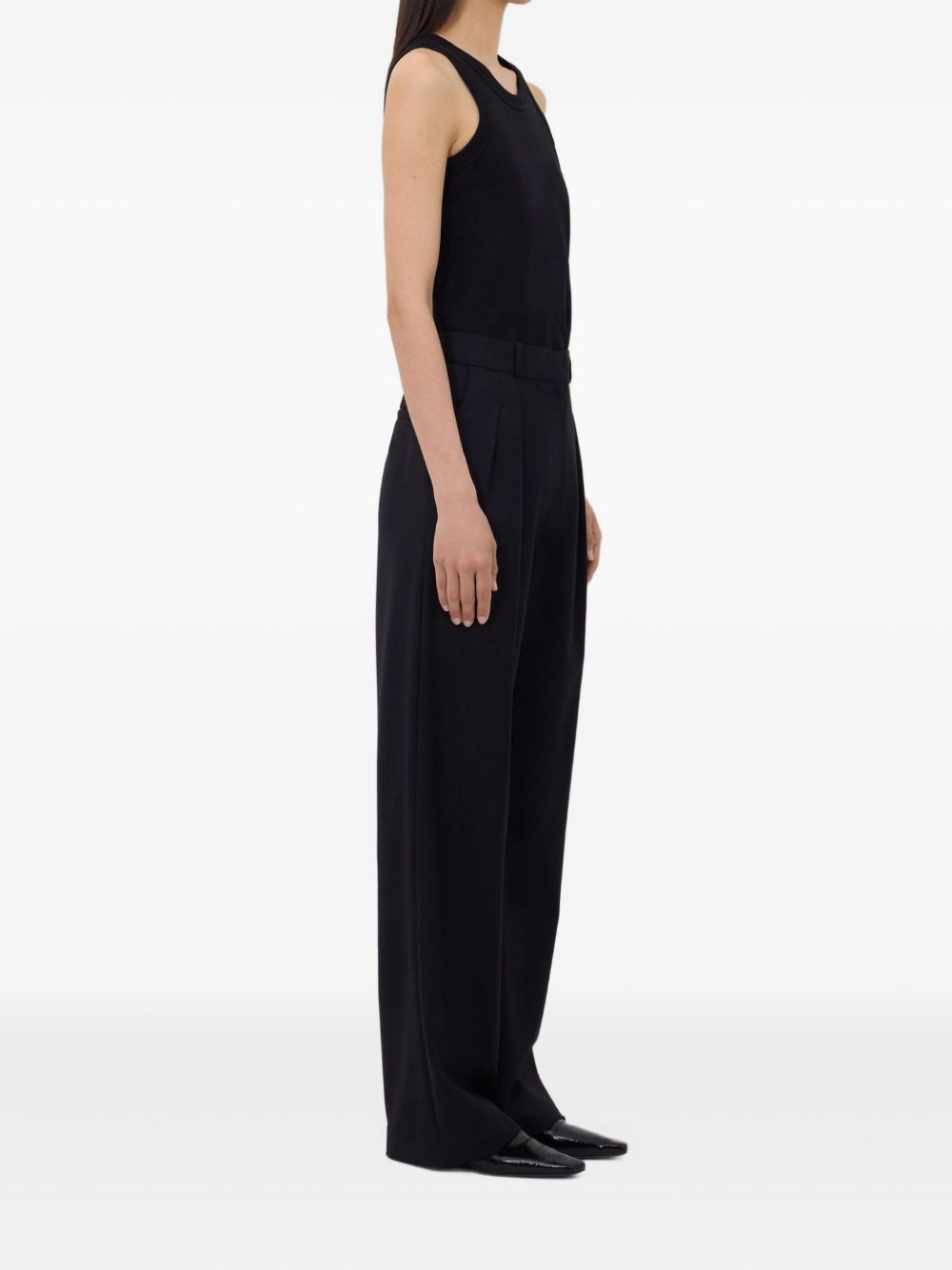 Black Sbiru pants by LouLou De Saison in wool with belt loops, concealed front closure, side welt pockets, and straight hem.
