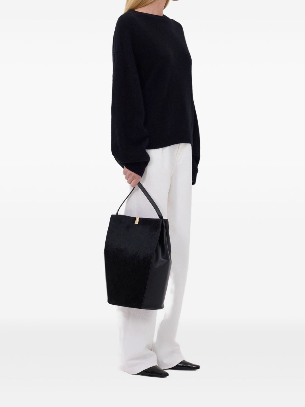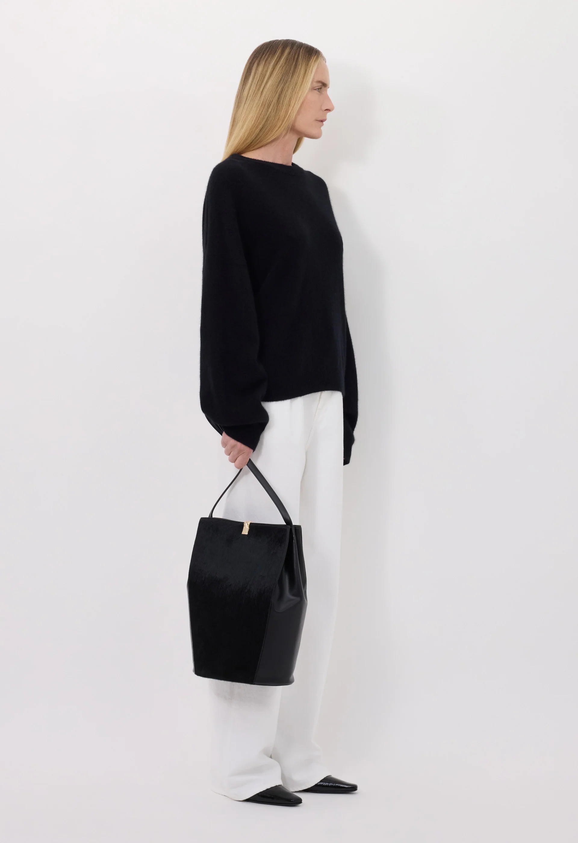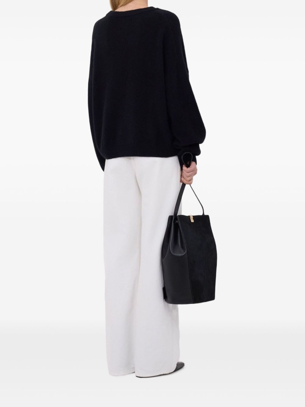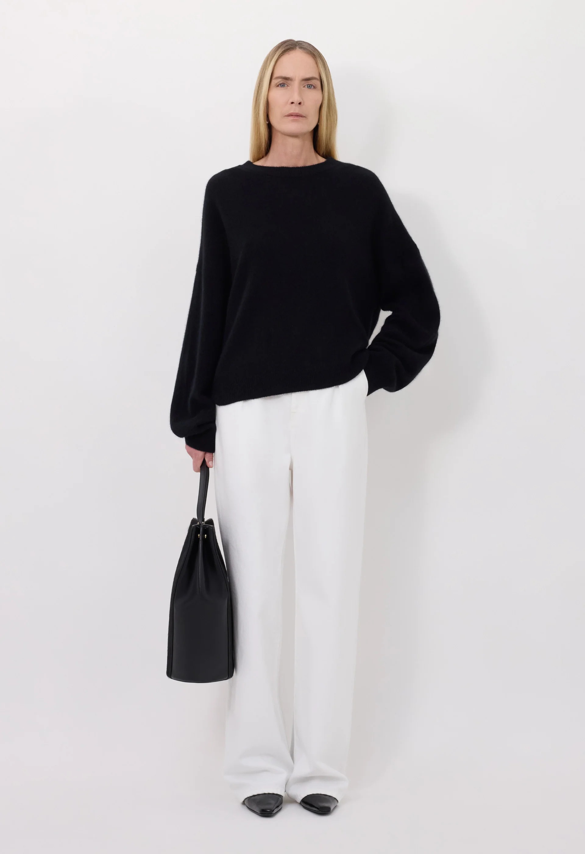 Tristan black sweater by LouLou De Saison in wool with a crew neck, long sleeves, and ribbed hem and cuffs.