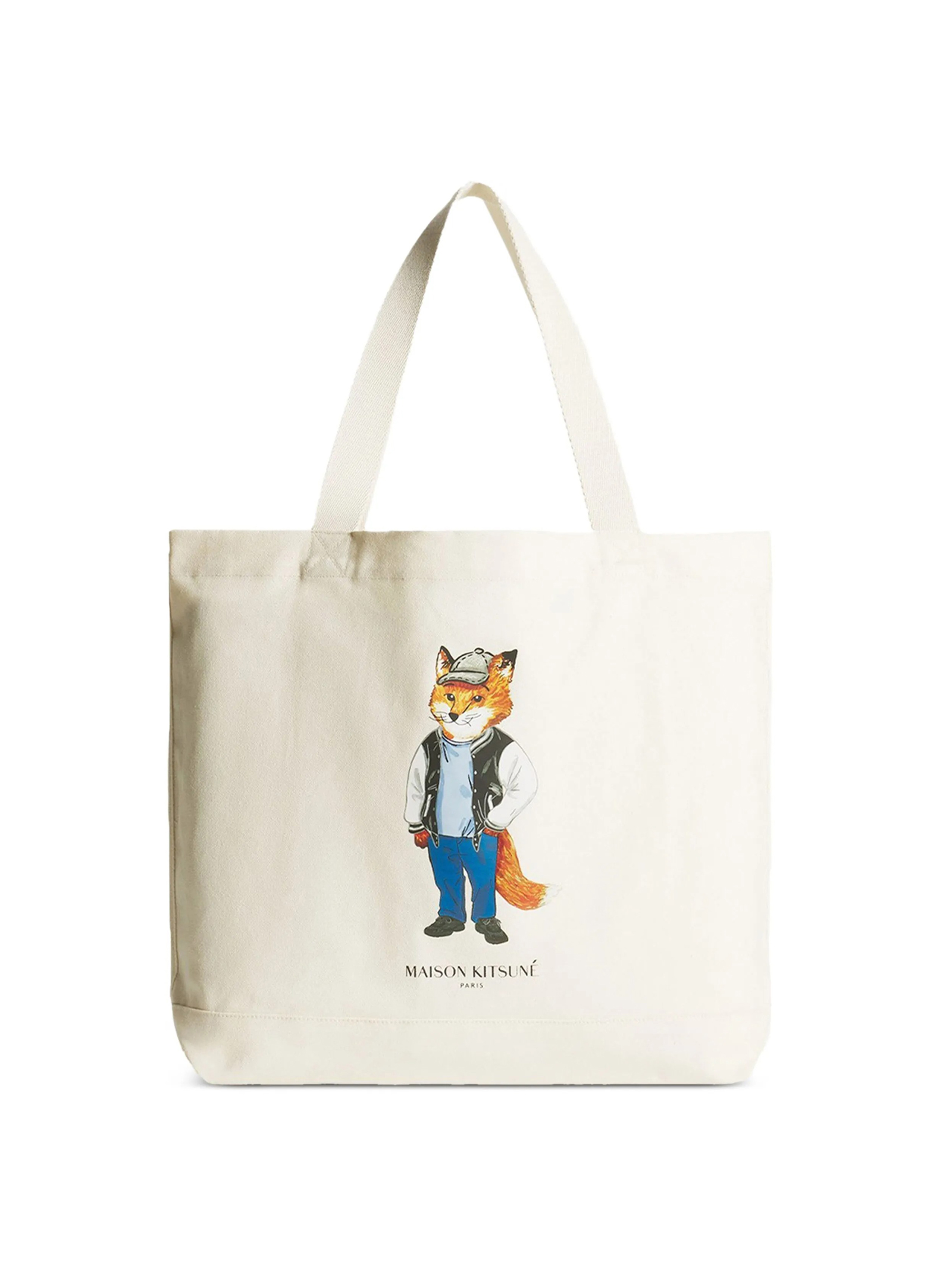Ecru cotton tote bag by Maison Kitsuné with two handles and front print.