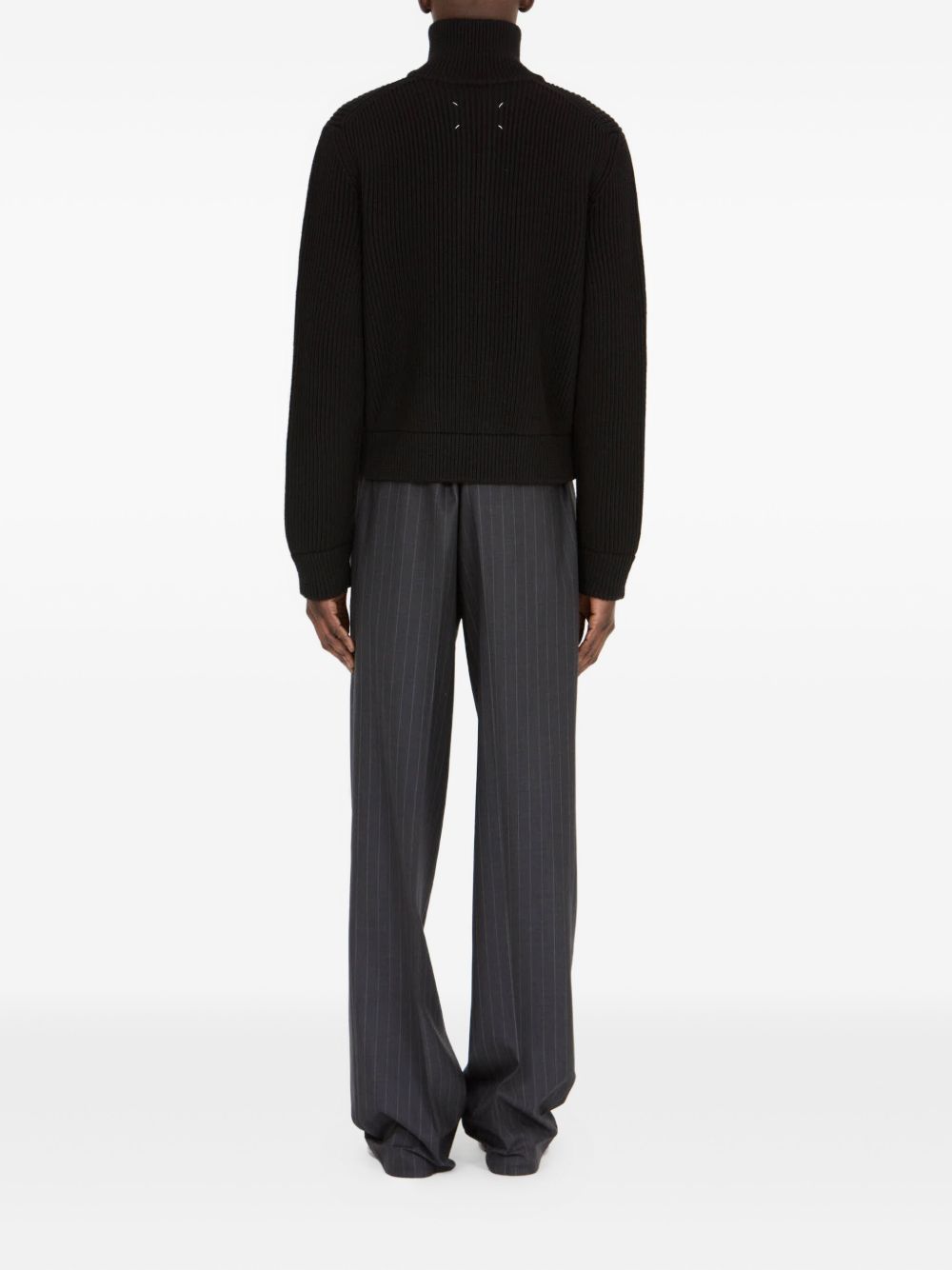 Black Zipped cardigan by Maison Margiela in wool with front zip closure, long sleeves, and high collar.