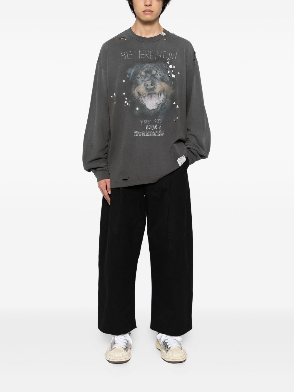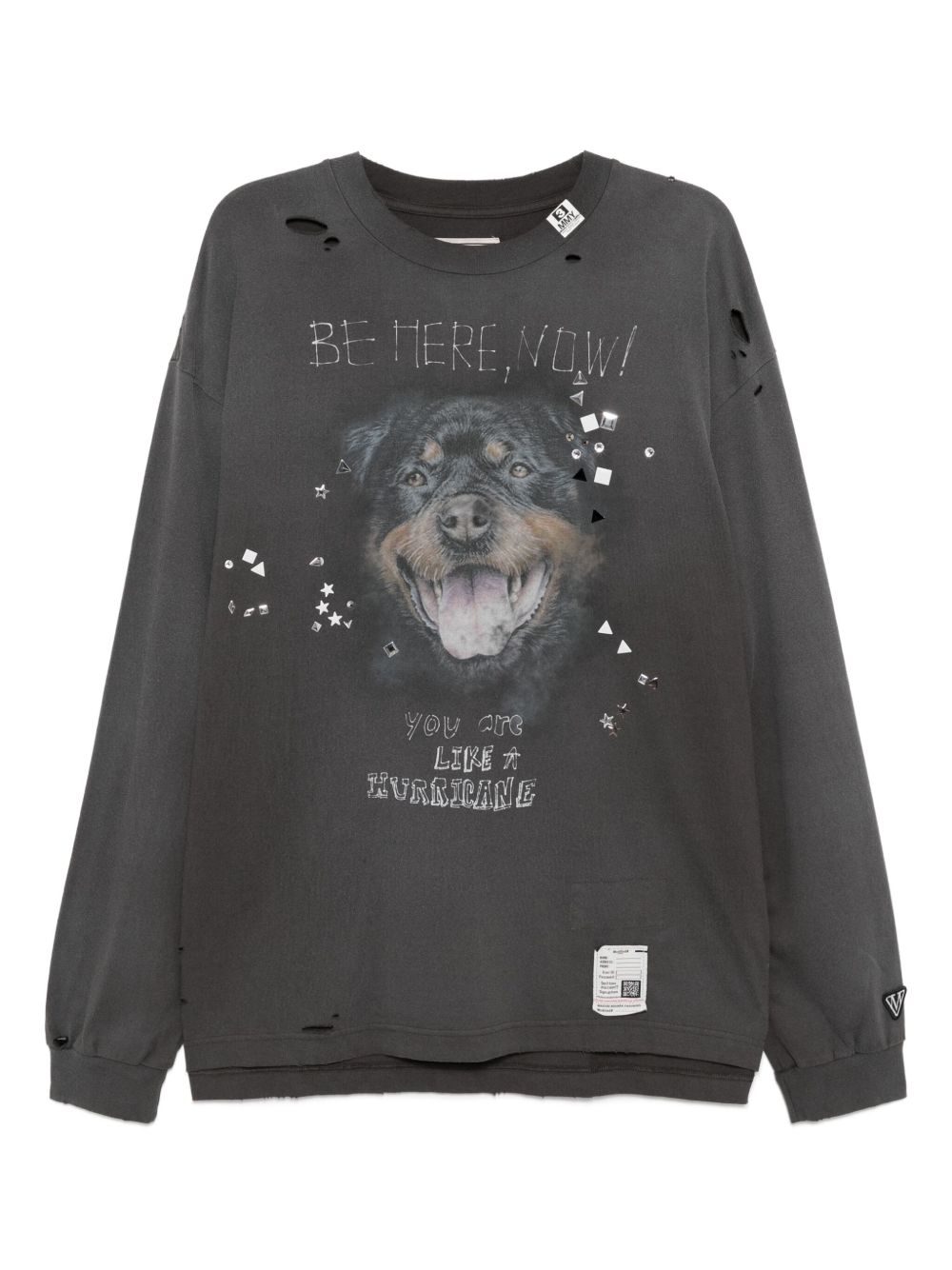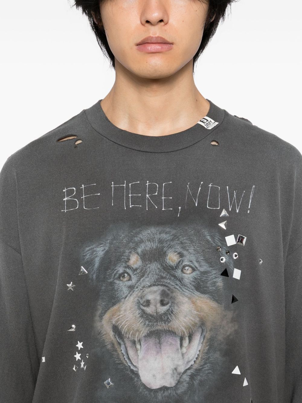DOG PRINTED EMBELLISHED DISTRESSED LS TEE