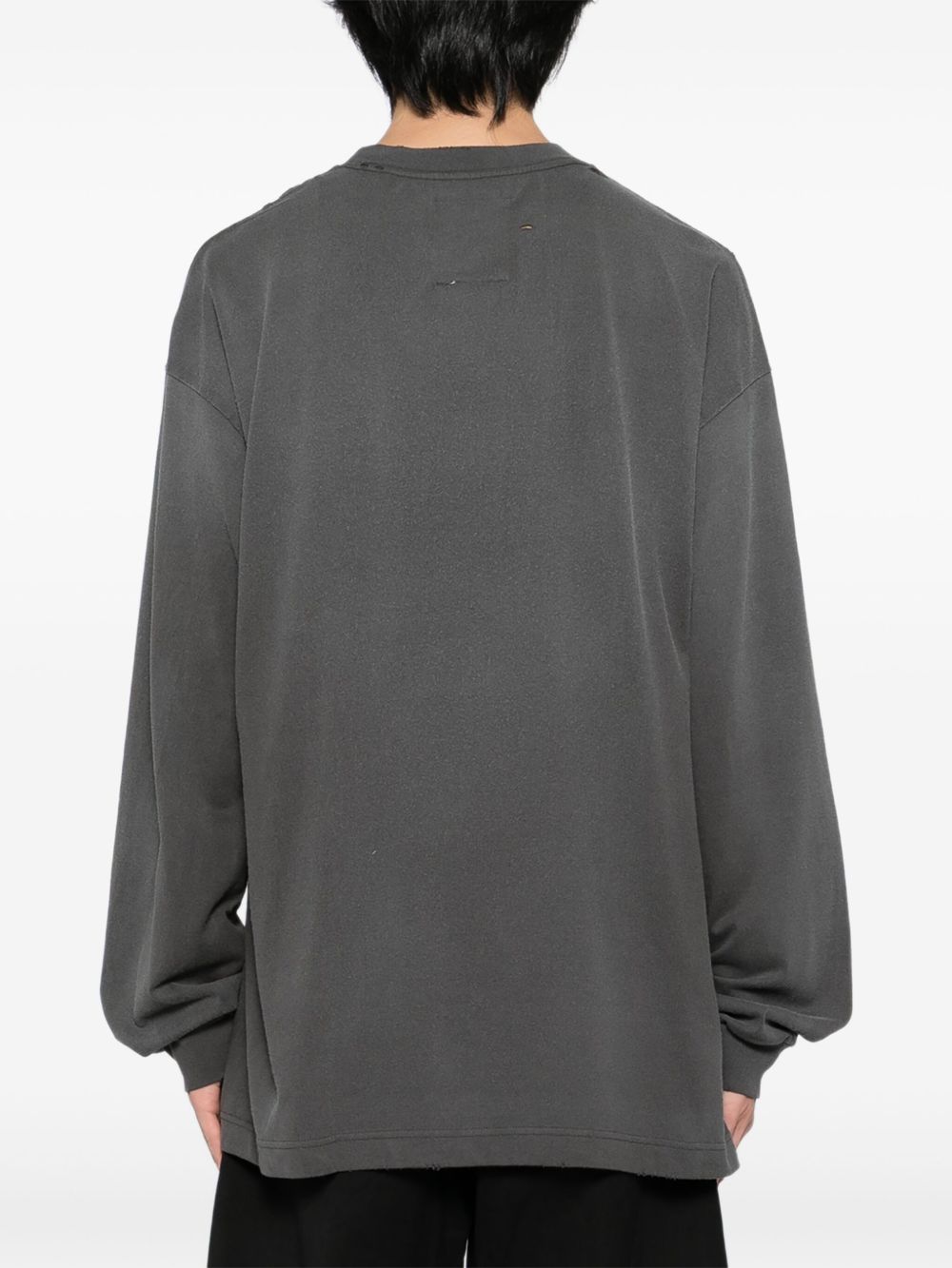 Black cotton T-shirt by Maison Mihara Yasuhiro with a crew neck, front print, and long sleeves.