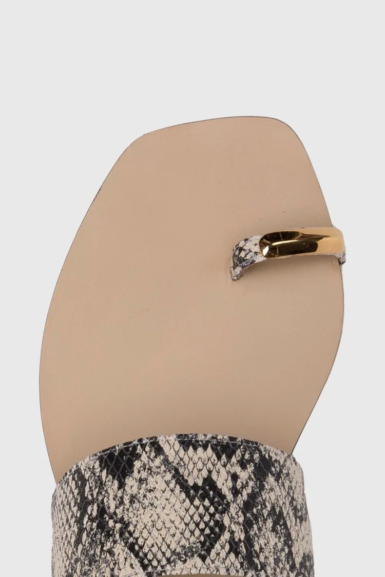 Maria Luca's Oleandra Capri python-print sandals, crafted from leather with a slip-on design, a gold-tone metal strap across the toe, and a flat sole.