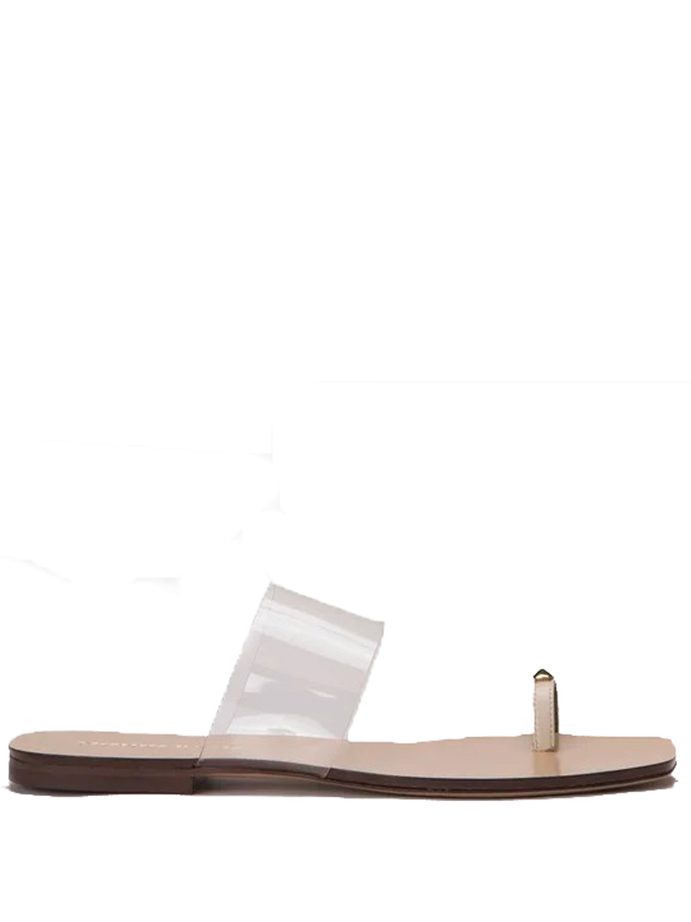 Oleandra Capri transparent leather sandals by Maria Luca, featuring a slip-on design, a gold-tone metal strap across the toe, and a flat sole.