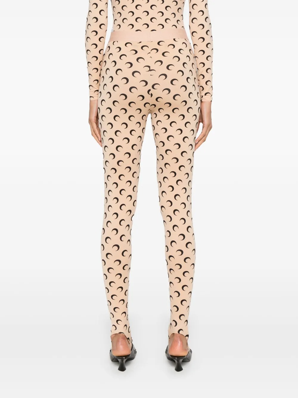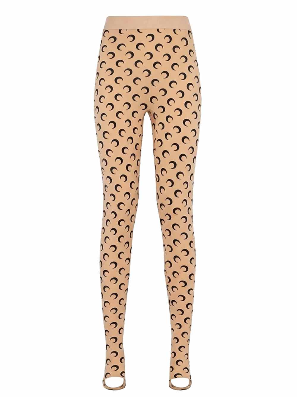 Beige and black leggings by Marine Serre in polyamide with elasticated waist and all-over Moon print.