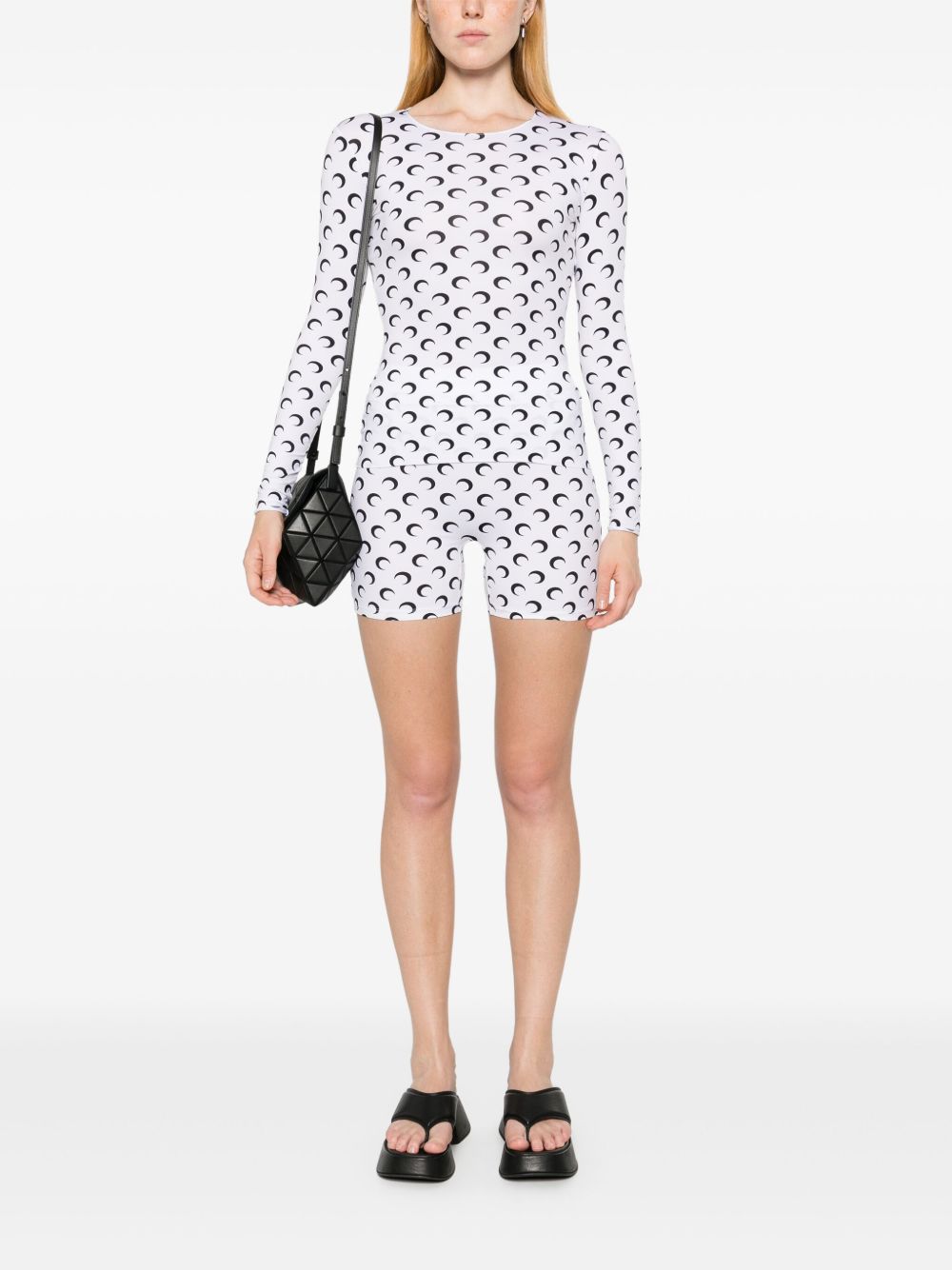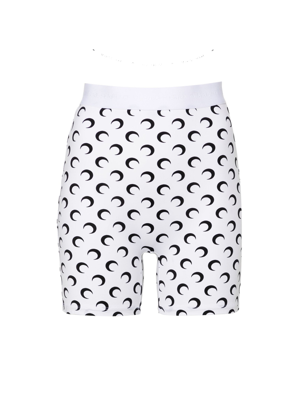 White and black shorts by Marine Serre, made of polyamide, with an elastic waistband and an all-over Moon print.