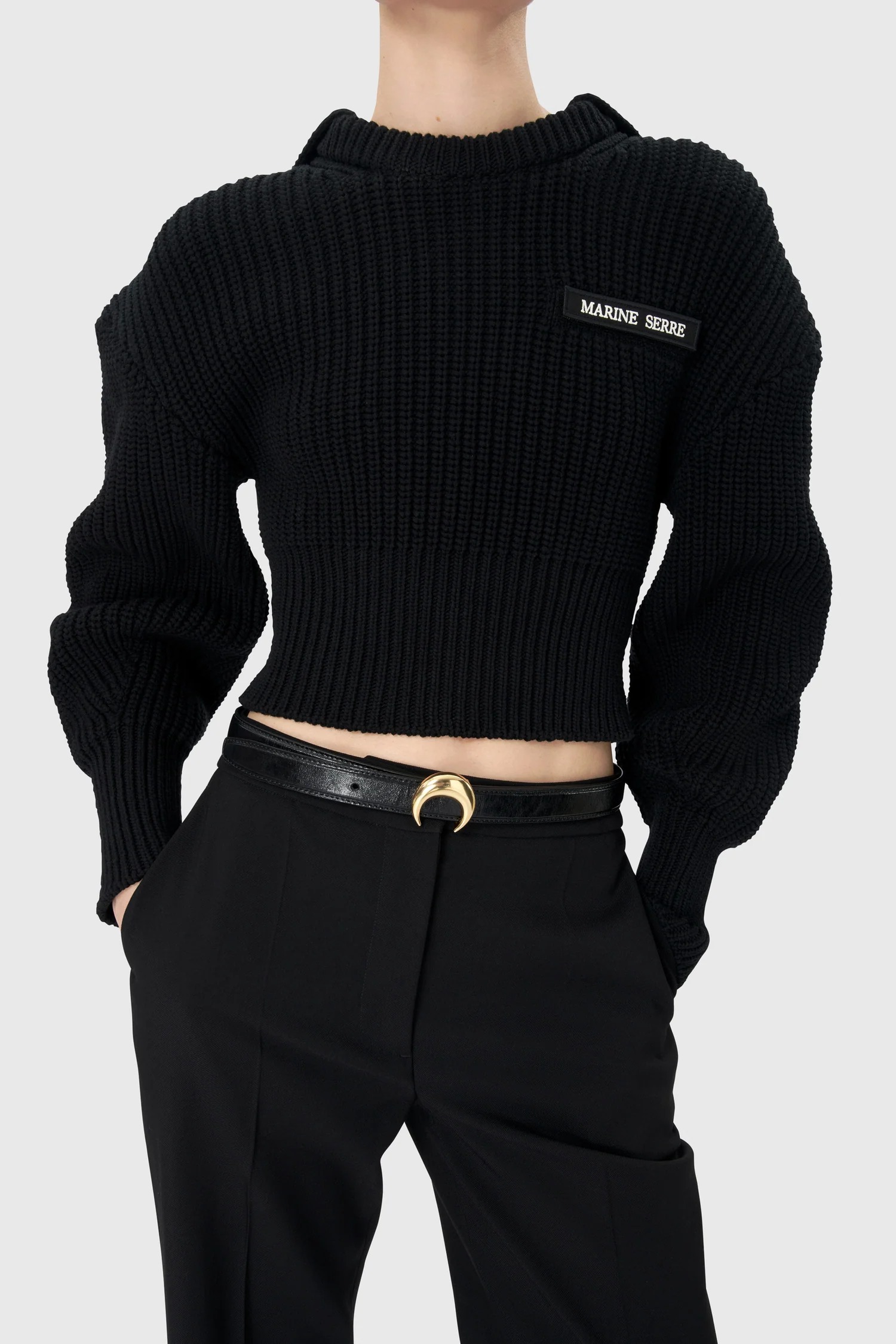 Cintura nera di Marine Serre in pelle con fibbia Moon.