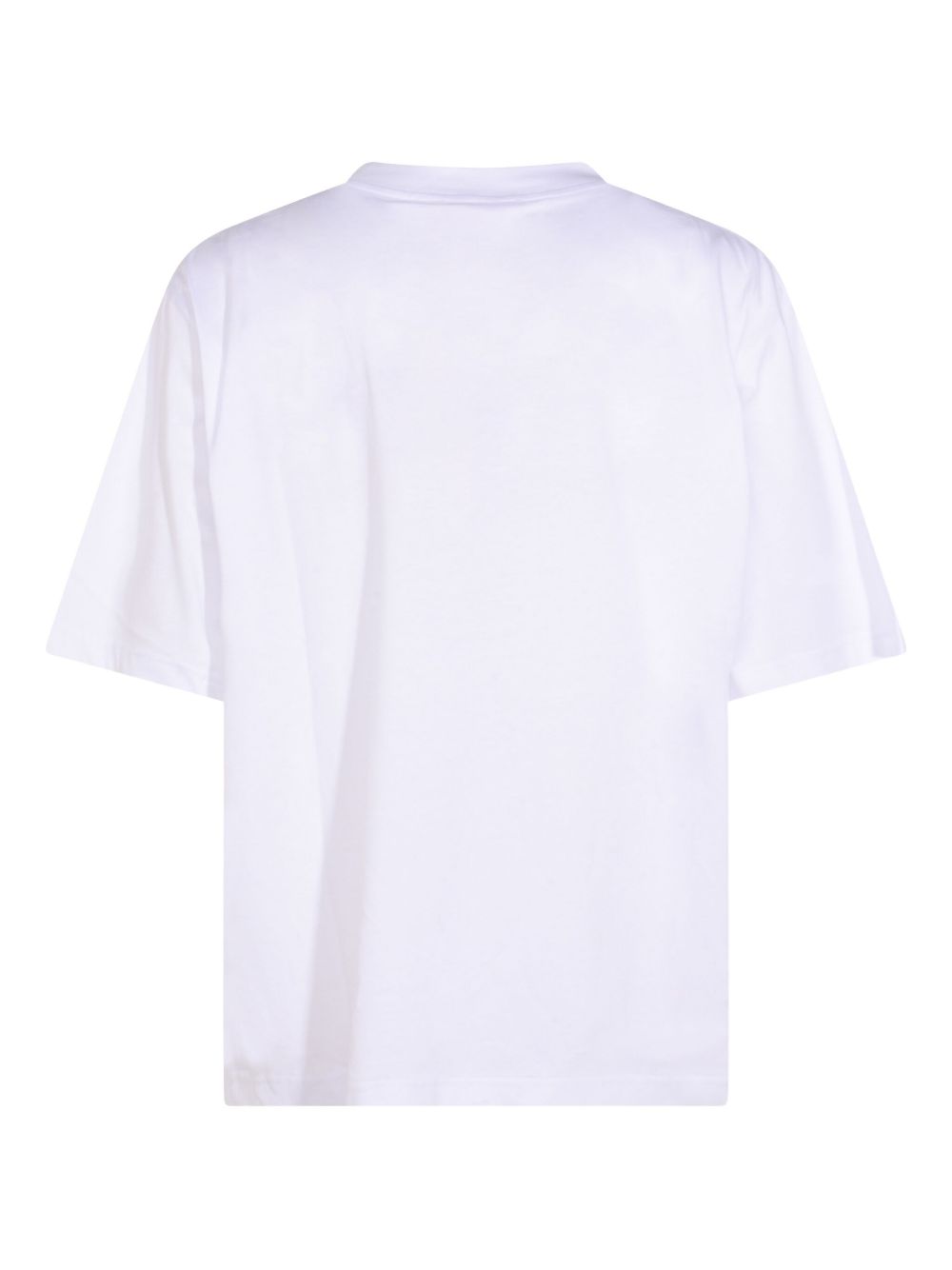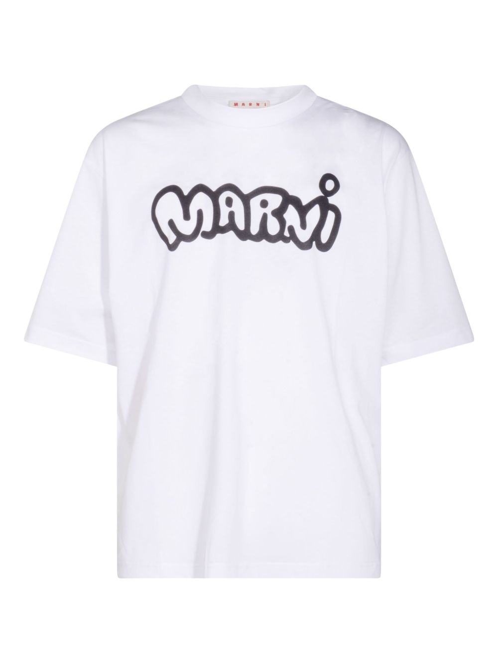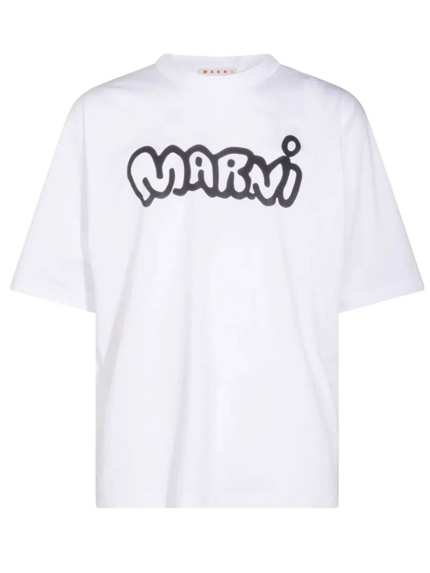 White Marni T-shirt in organic cotton with a raised crew neck, printed logo on the front, and a straight hem.