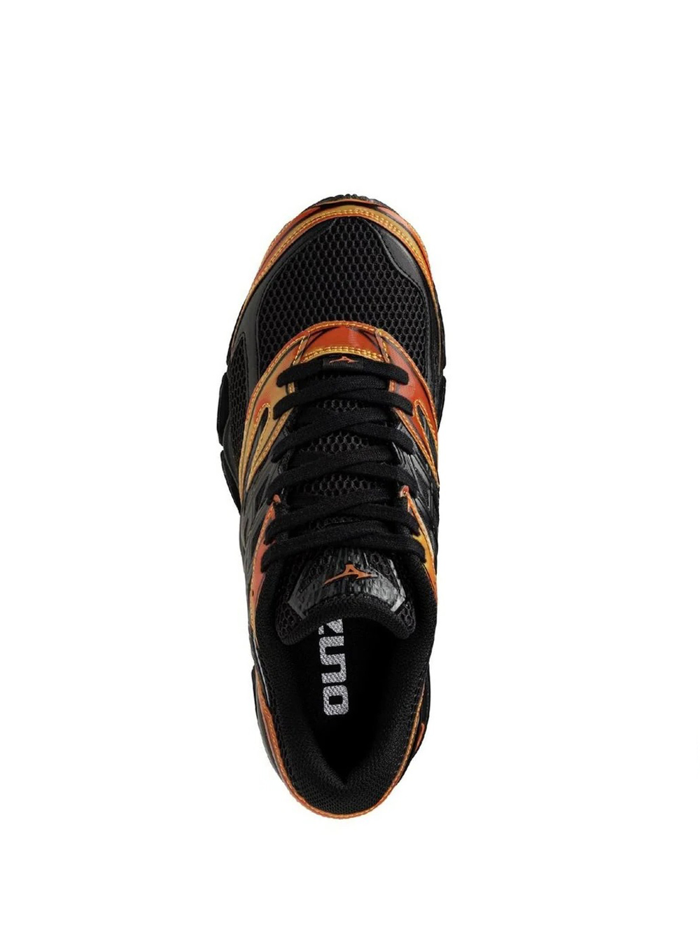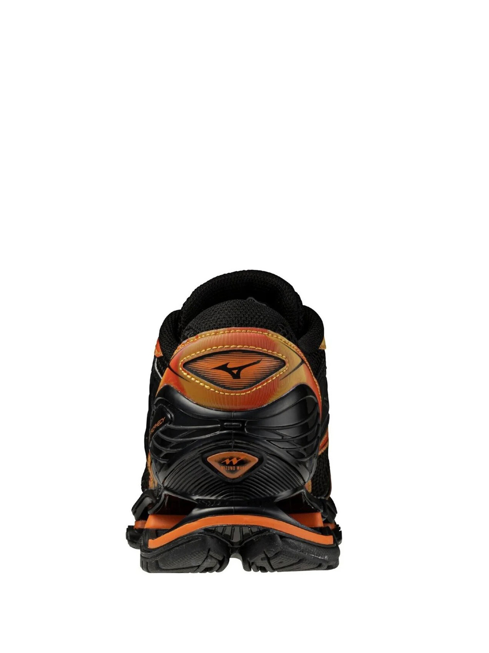 Mizuno Wave Prophecy LS black suede sneakers with a round toe, lace-up front closure, side logo, leather accents, and a 4 cm rubber sole.