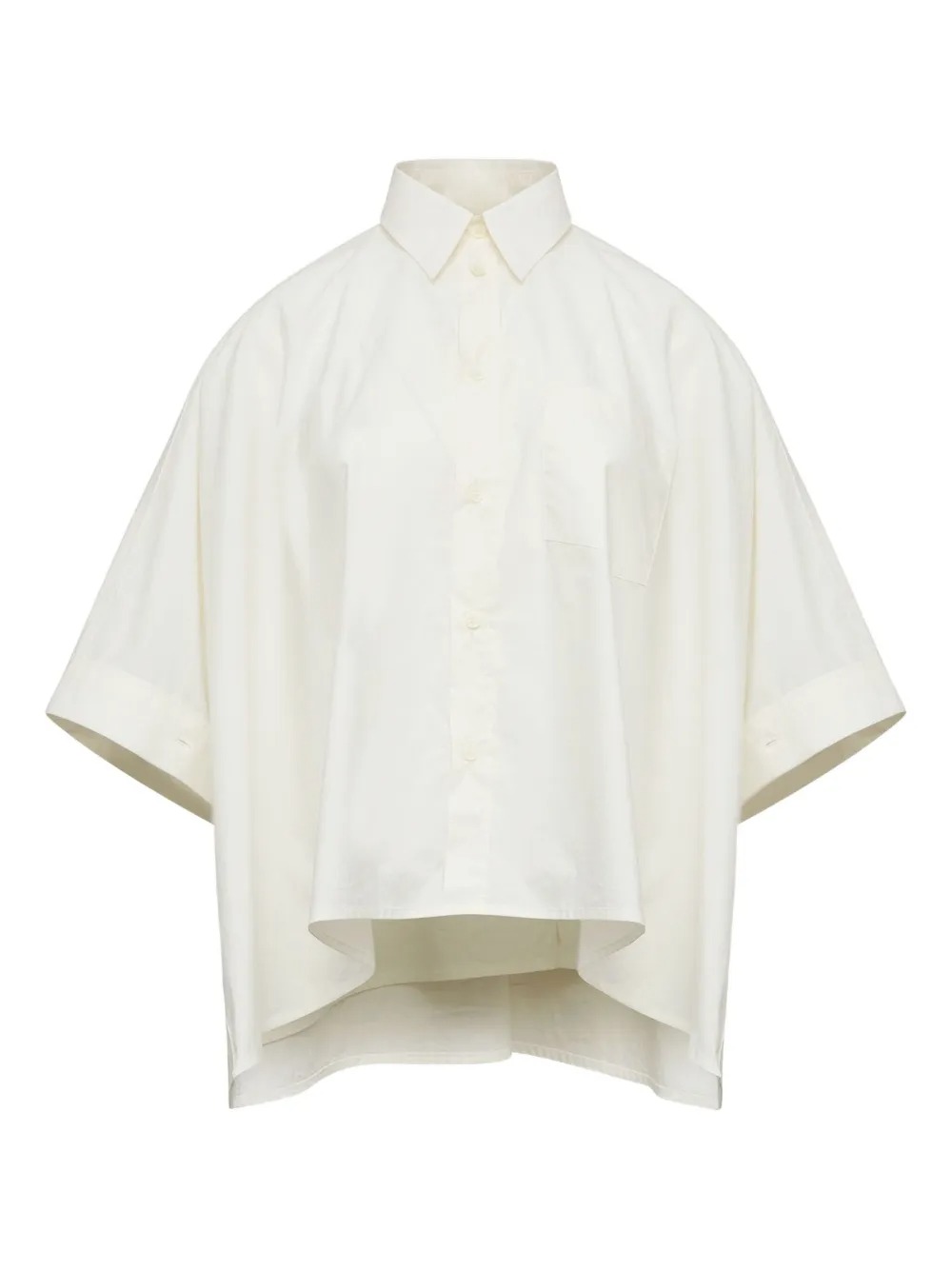 Camicia bianca di MM6 Maison Margiela in cotone con maniche corte, taschino sul petto e chiusura a bottoni.