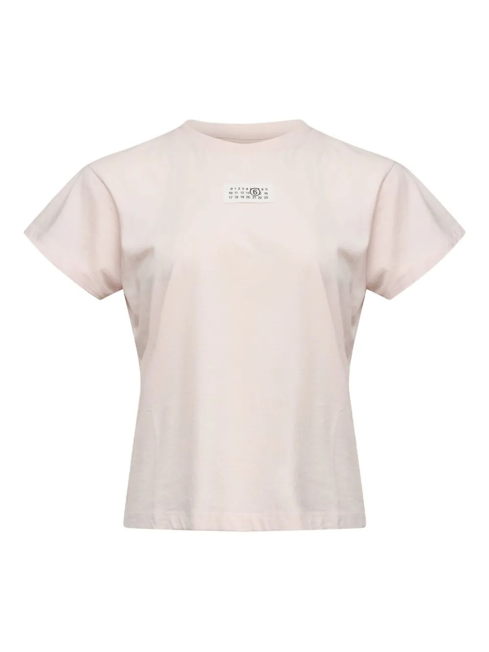 Pink cotton T-shirt by MM6 Maison Margiela with short sleeves, crew neck, and straight hem.