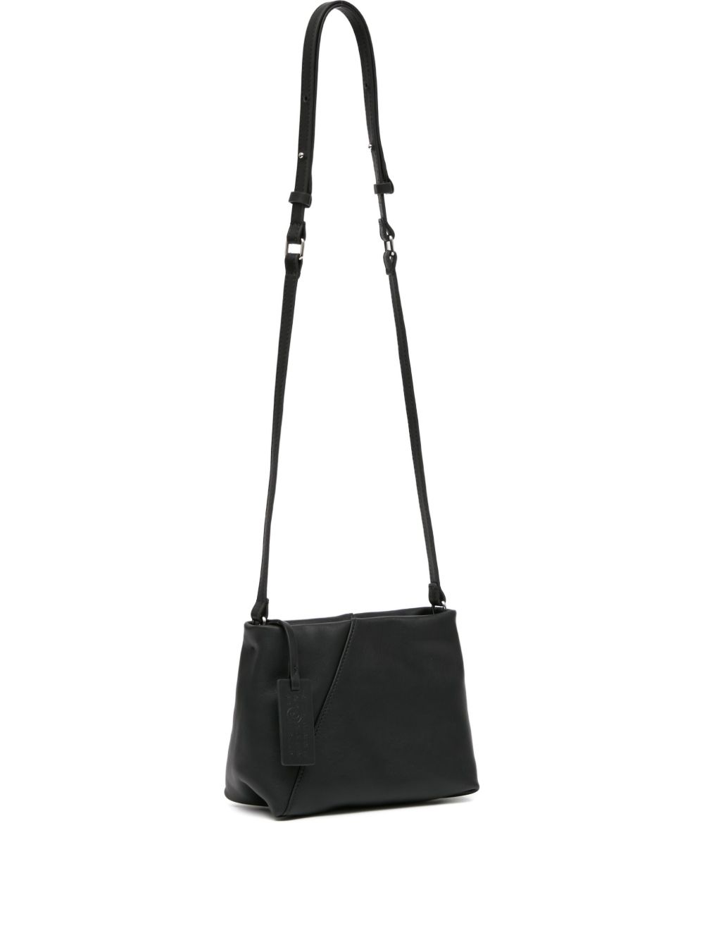 MM6 Maison Margiela Folded J Shoulder bag in leather with adjustable shoulder strap, top zip closure, and logo label.