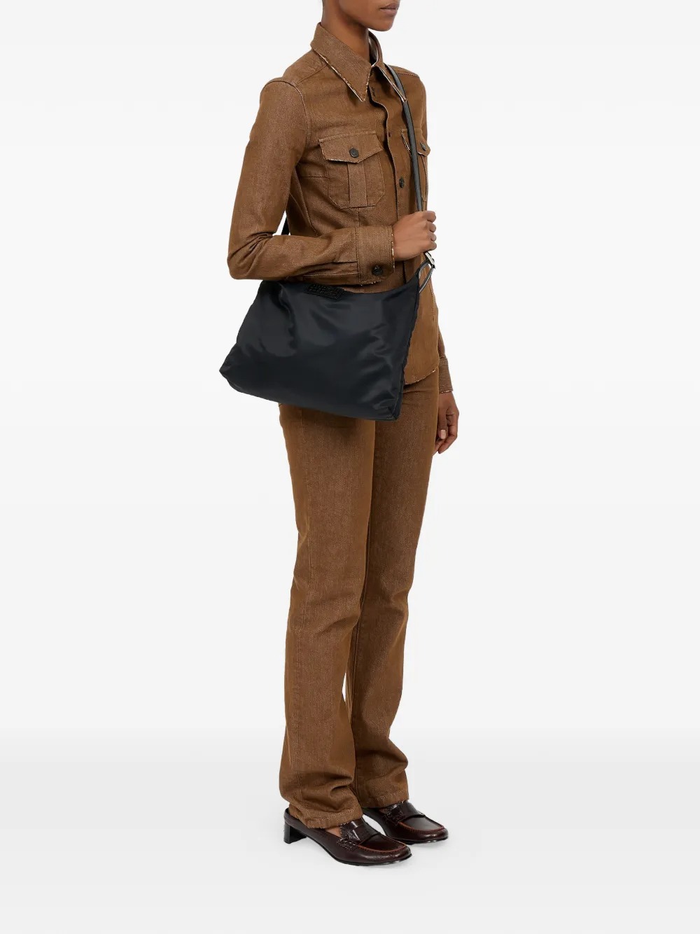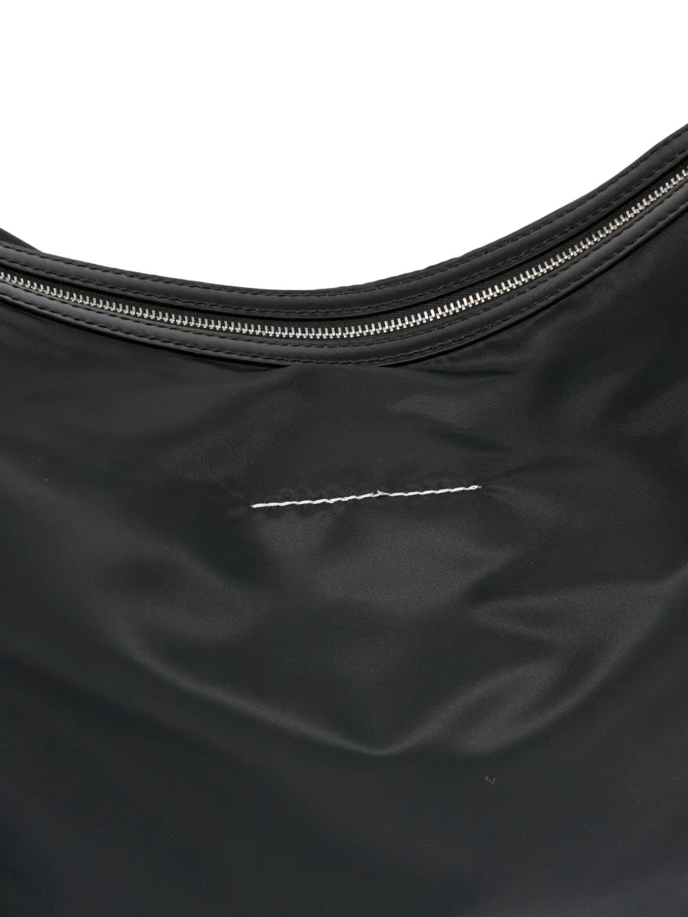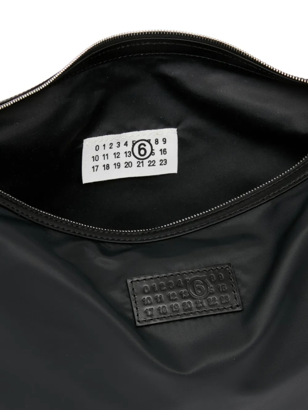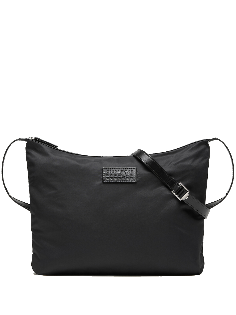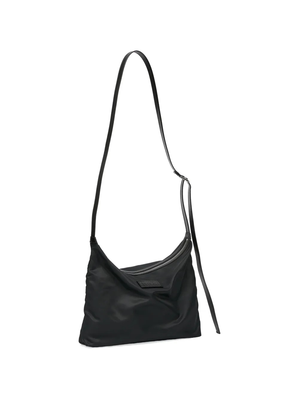 Borsa nera Numeric Crossbody Bag di MM6 Maison Margiela in nylon con chiusura con zip, tracolla regolabile e applicazione rettangolare con logo.