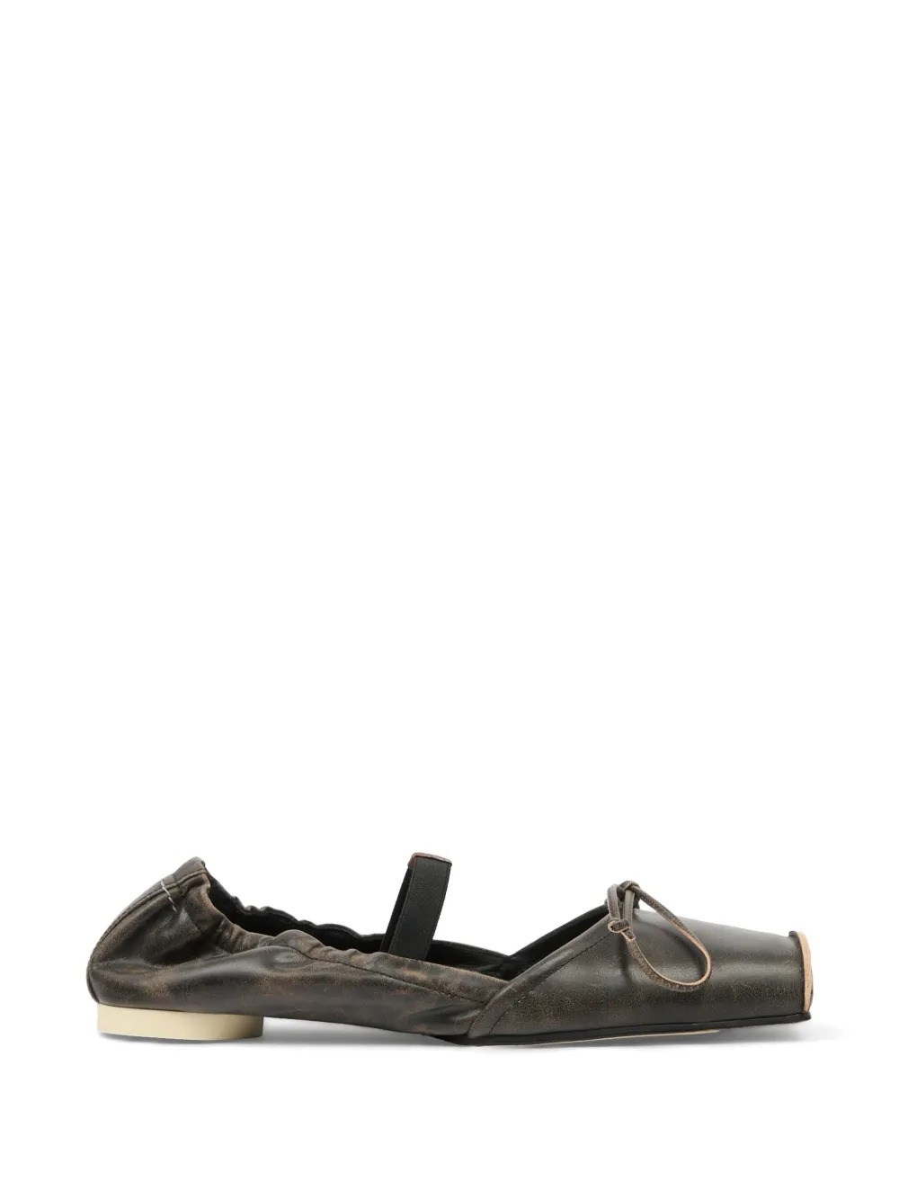 Brown Square-Toe Ballerina Flats by MM& Maison Margiela in leather with elasticated band, square toe, bow detail, and flat sole.