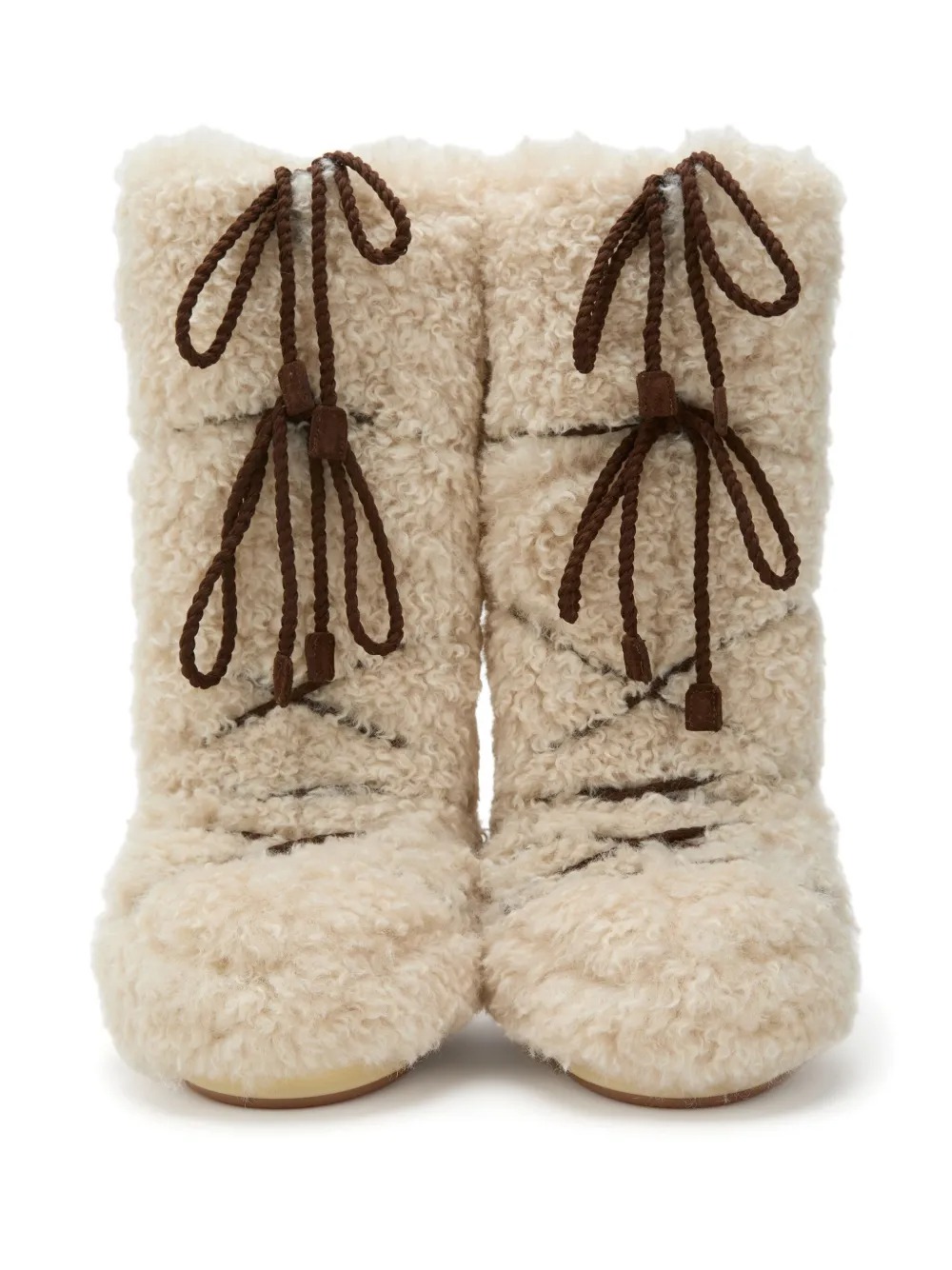 Icon Curly Extra ecru boots for women by Moon Boot with round toe, drawstring closure at the top, slip-on design, padding, and flat sole.