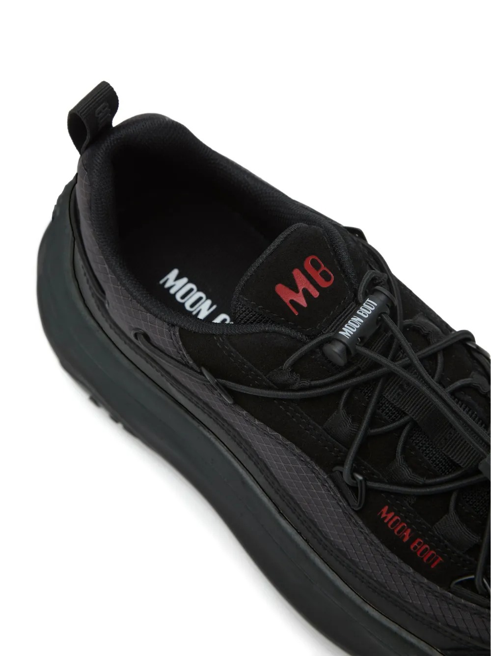 Moon 247 sneakers by Moon Booot in polyester with lace-up closure at the front, side inserts with logo, rubber sole, heel tab, and logo eyelet.