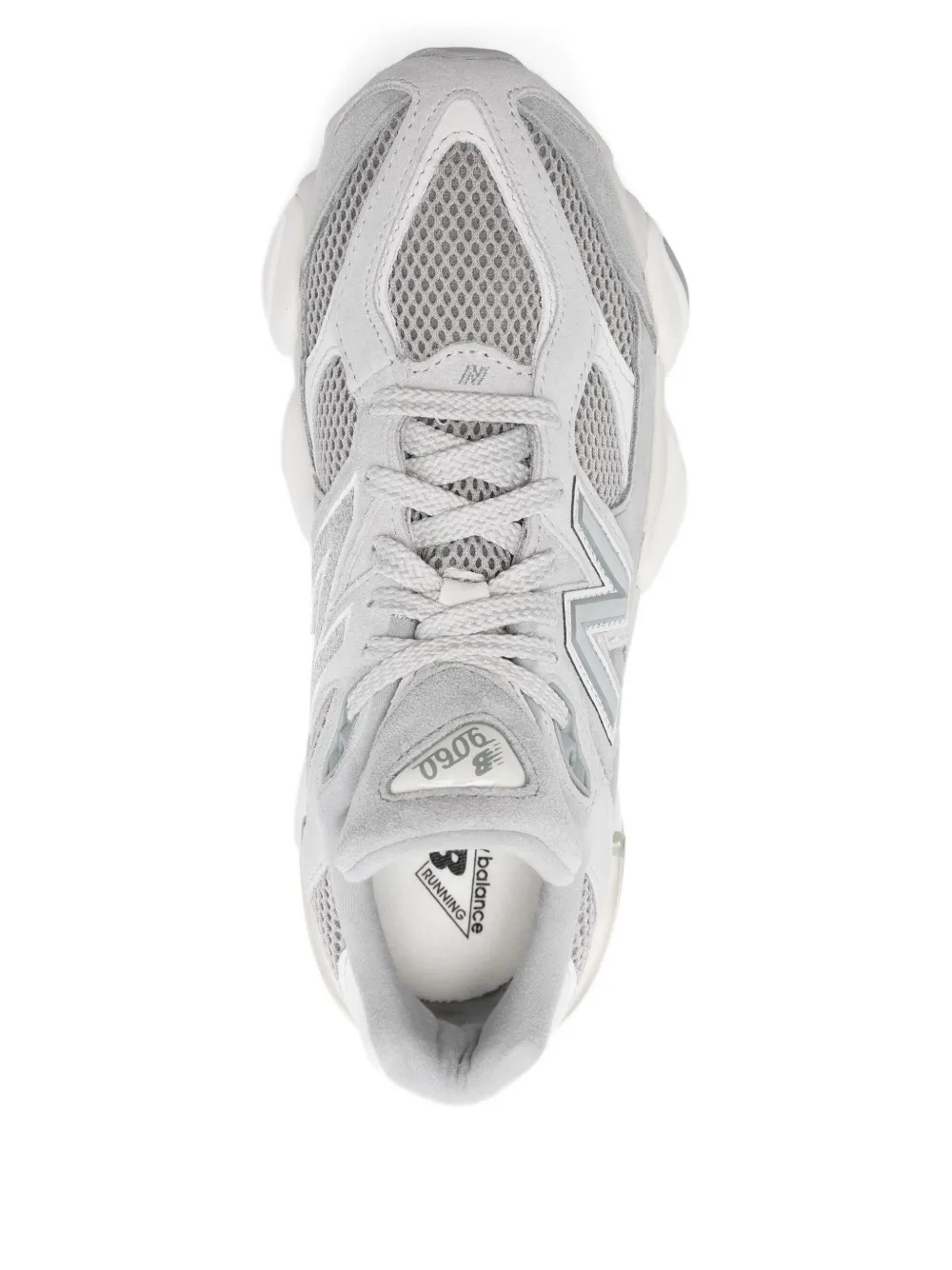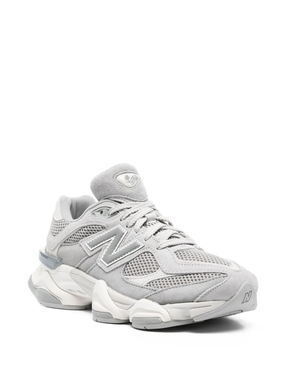 New Balance 9060 black sneakers in leather and polyester with round toe, side logo, front closure with laces and chuncky rubber sole.