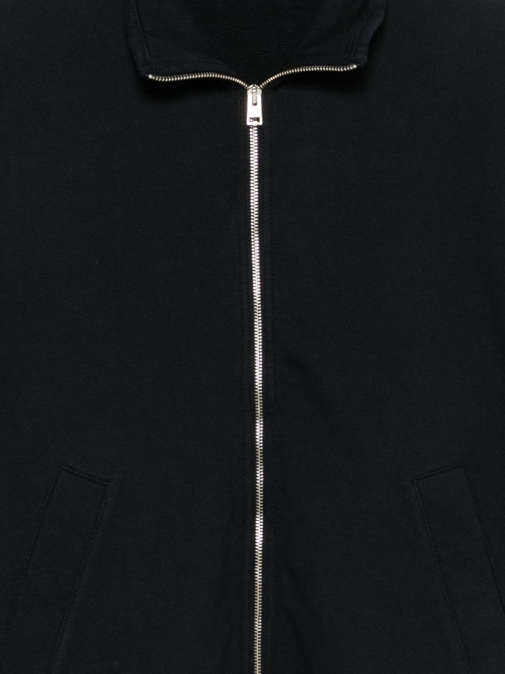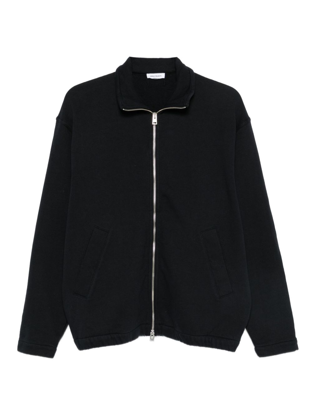 Giacca dark navy Bjorn di Norse Project in cotone con chiusura frontale con zip, maniche lunghe, tasche e laterali a filetto.