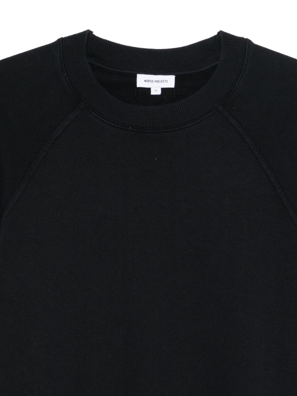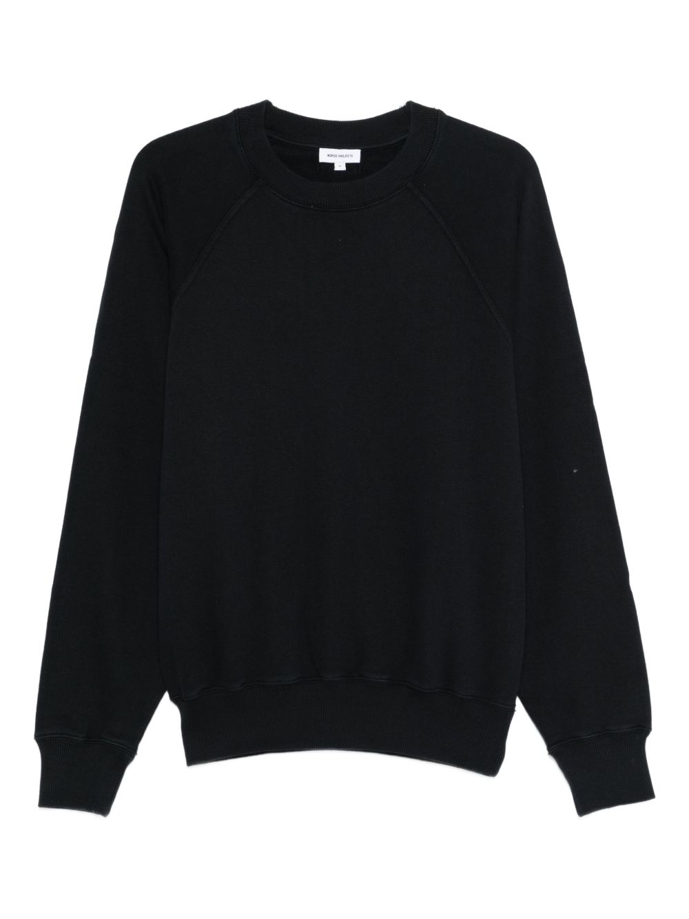 Dark blue Tyr sweatshirt by Norse Project in cotton with raglan sleeves, crew neck, ribbed hem, and ribbed cuffs.