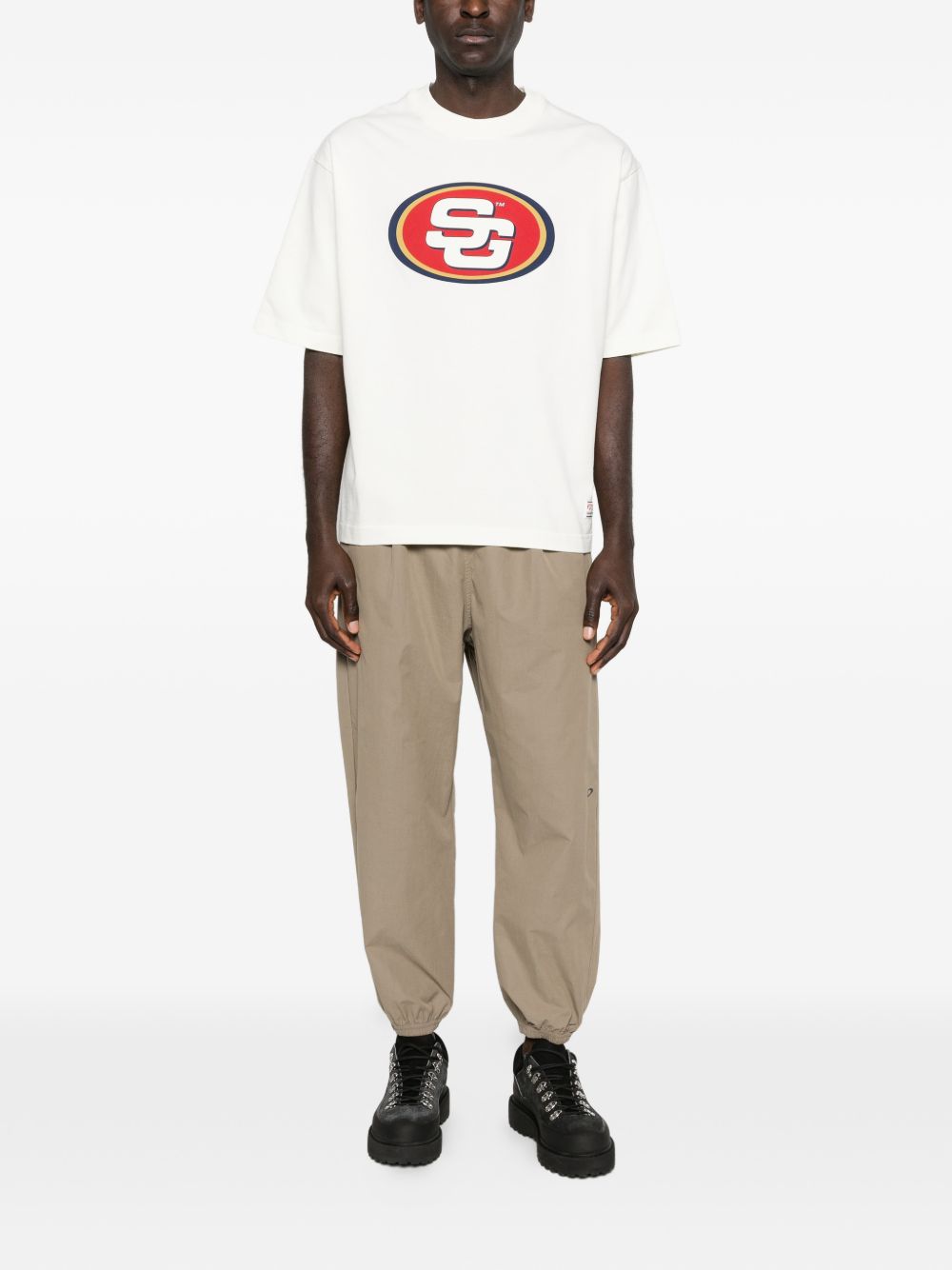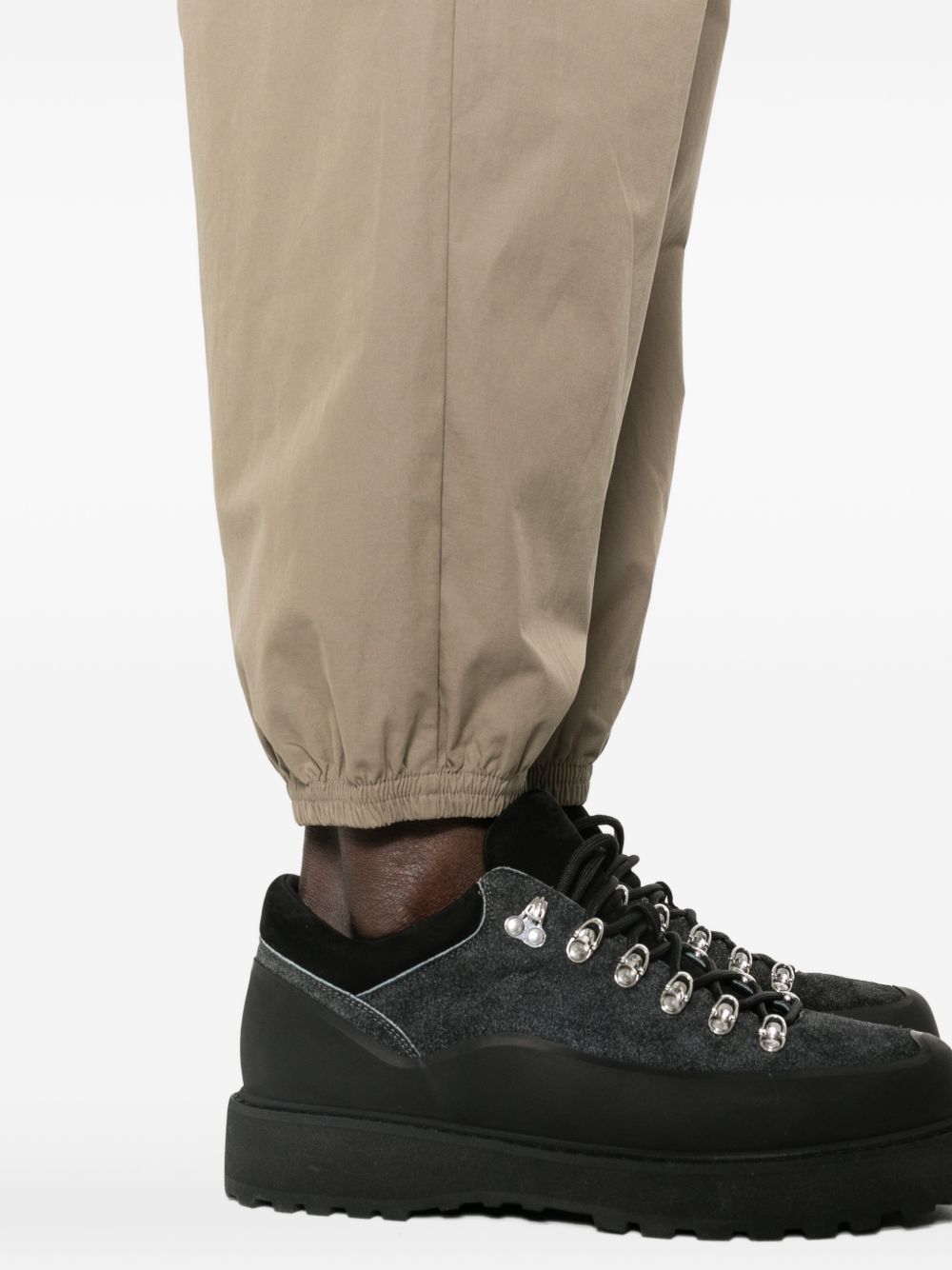 Oakley FGL Divisional 5.7 bark cotton pants with elastic waistband and drawstring, side welt pockets, back pockets, and elastic hem.