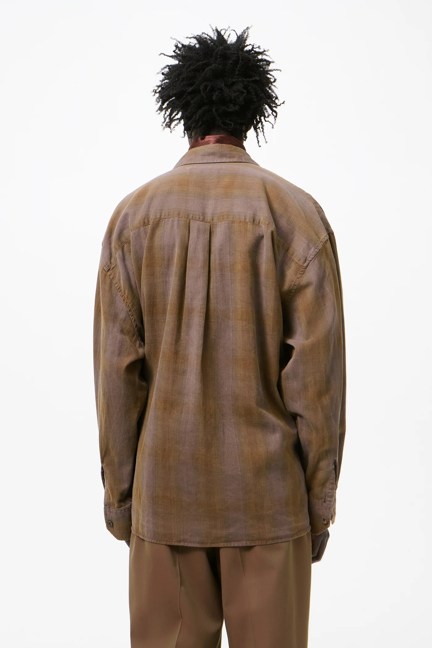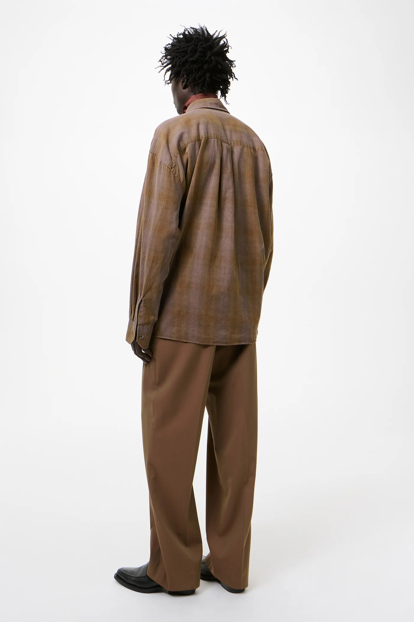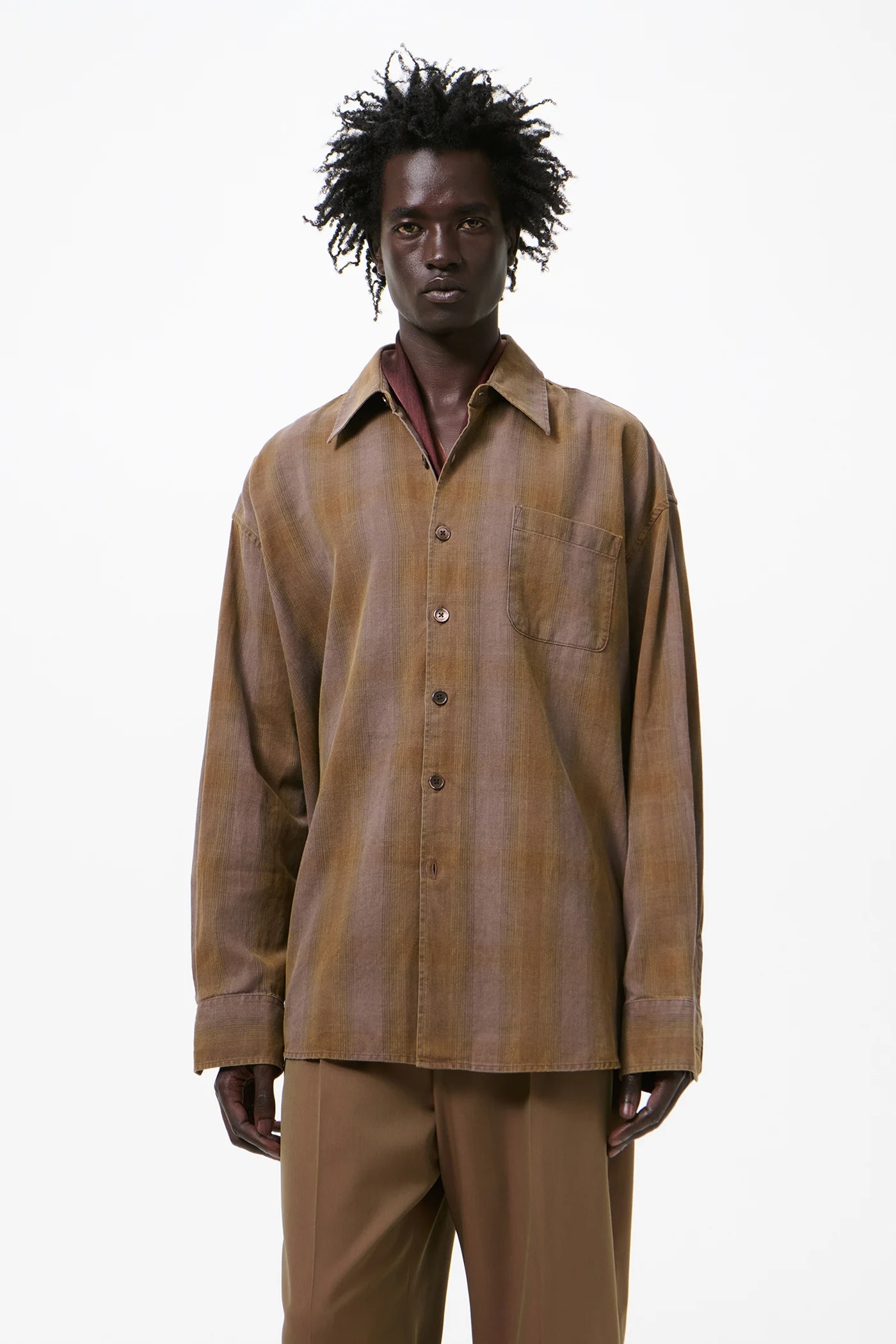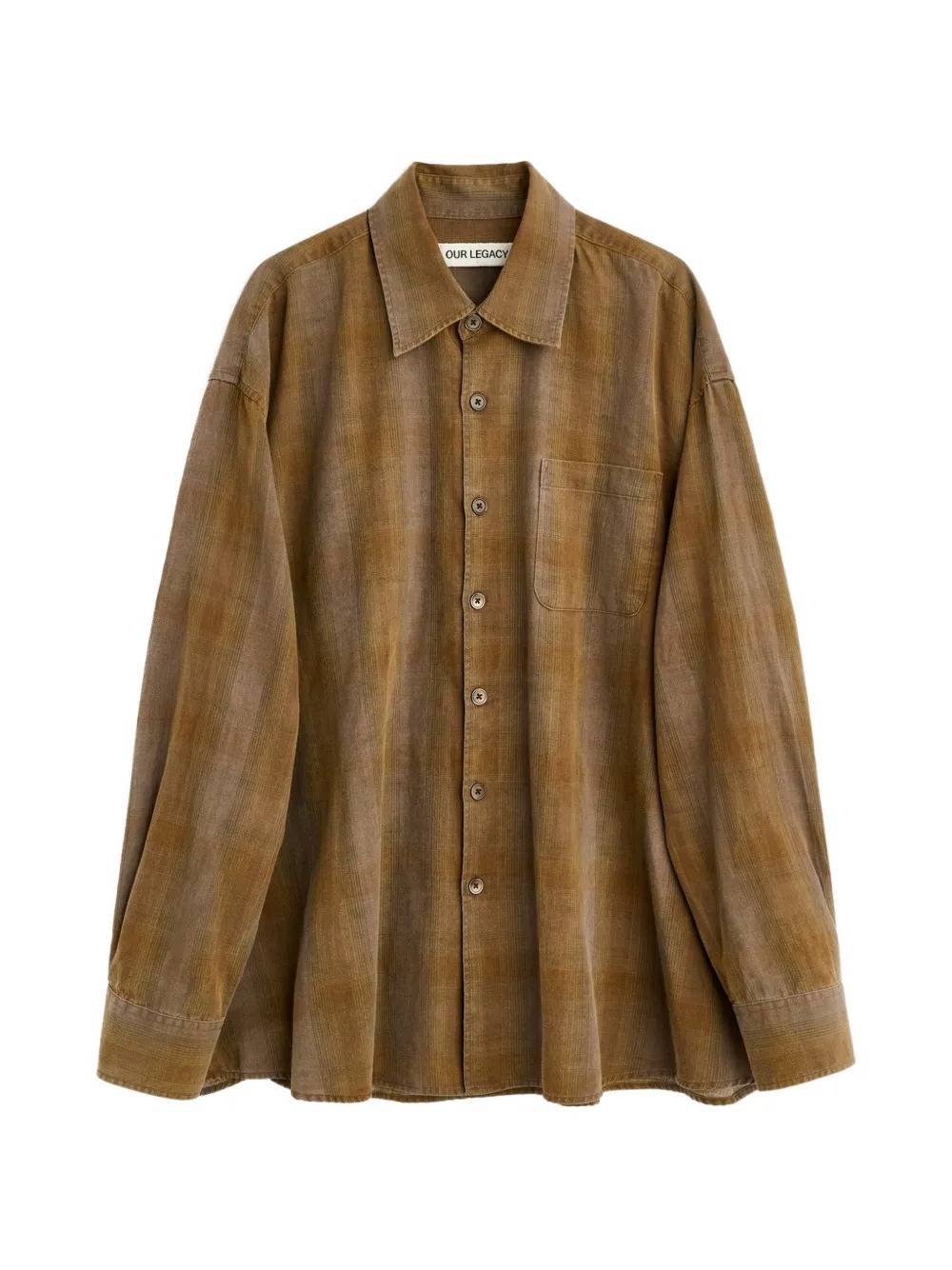 Beyond shirt by Our Legacy in cotton with a bowling collar, front button closure, and curved hem.