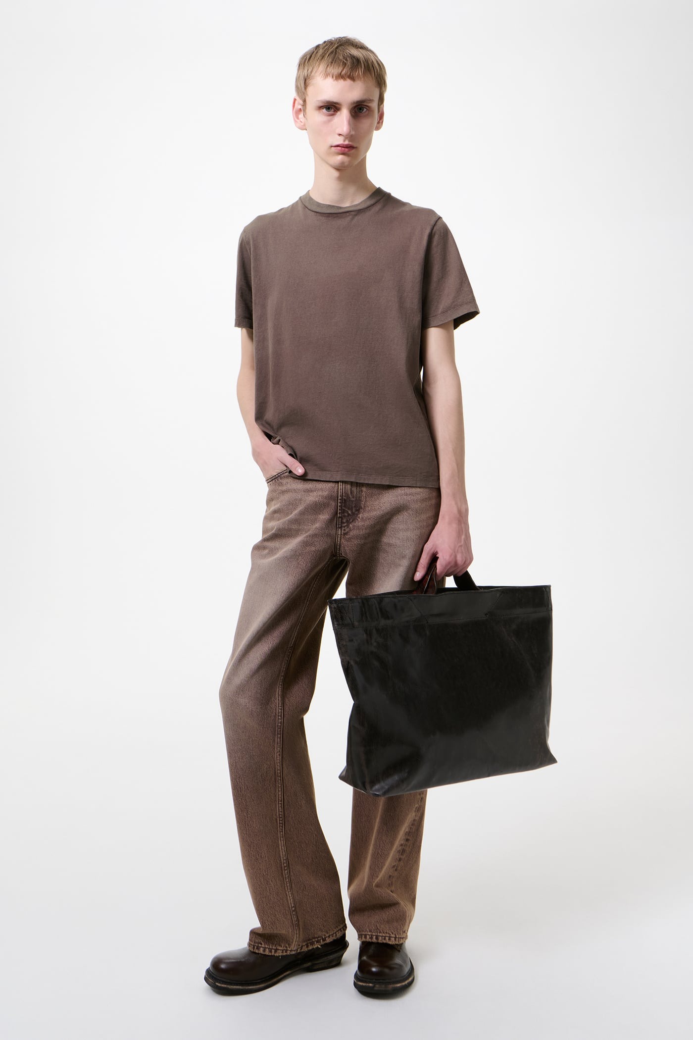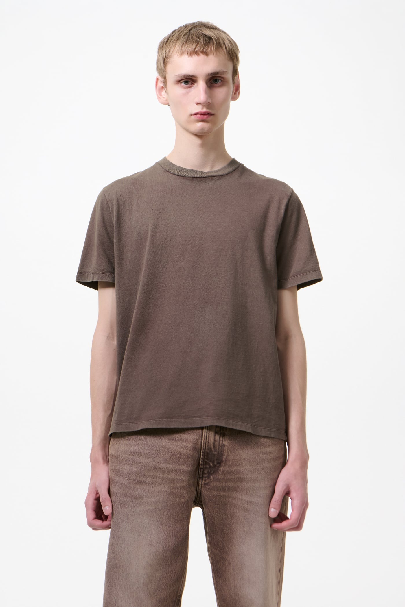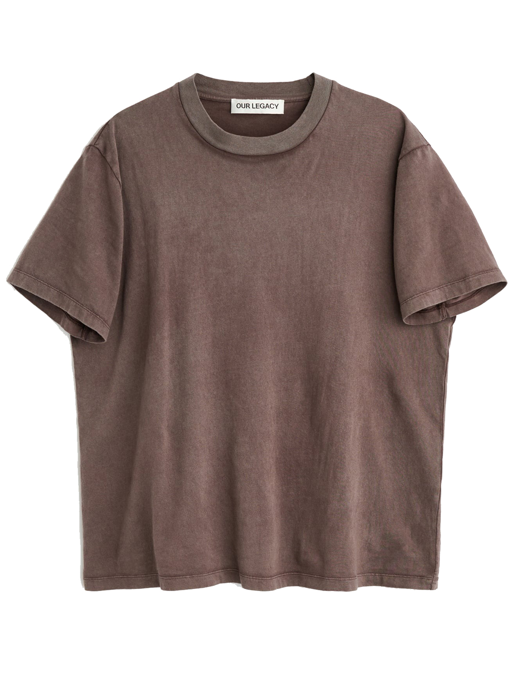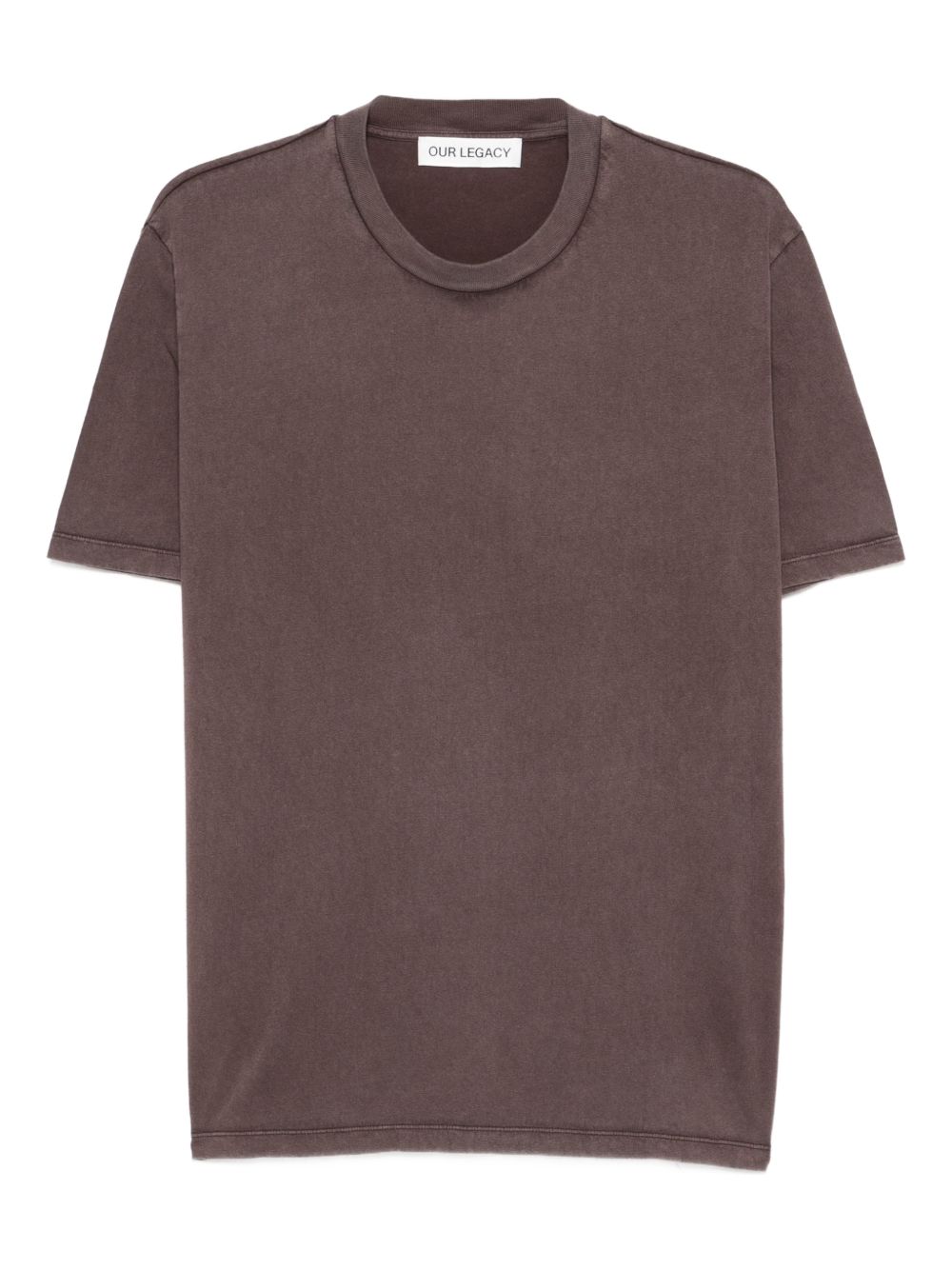 Brown cotton T-shirt by Our Legacy with crew neck, short sleeves, ribbed trim, boxy fit, and straight hem.