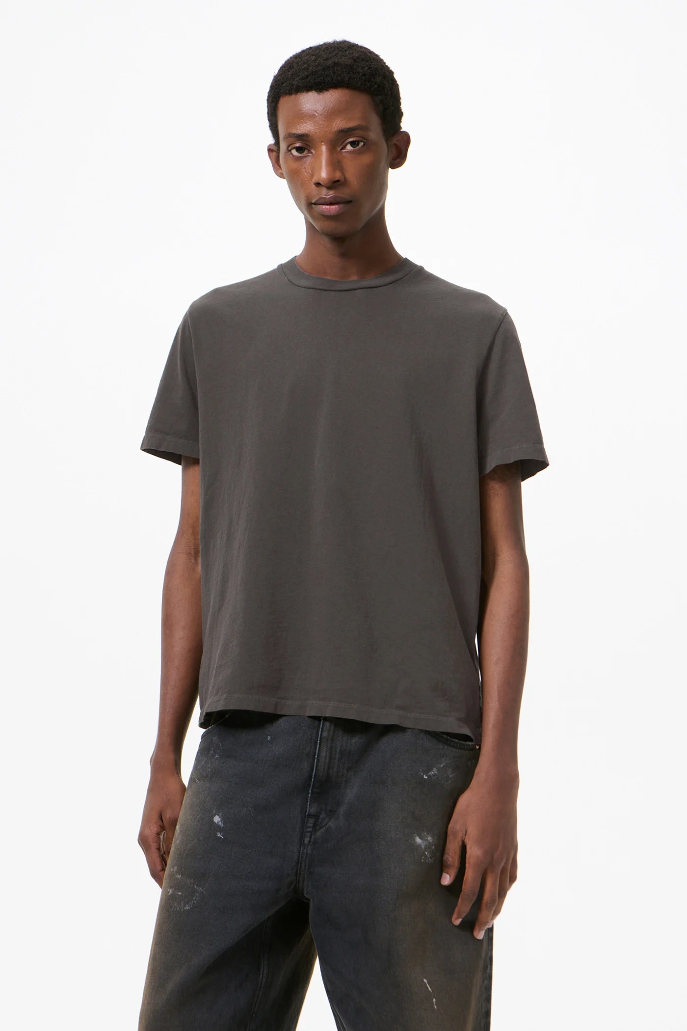 Graphite T-shirt by Our Legacy in cotton with a crew neck, short sleeves, ribbed trim, boxy fit, and straight hem.
