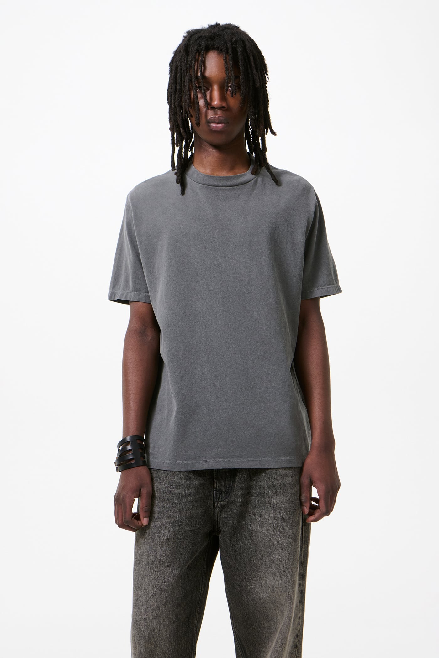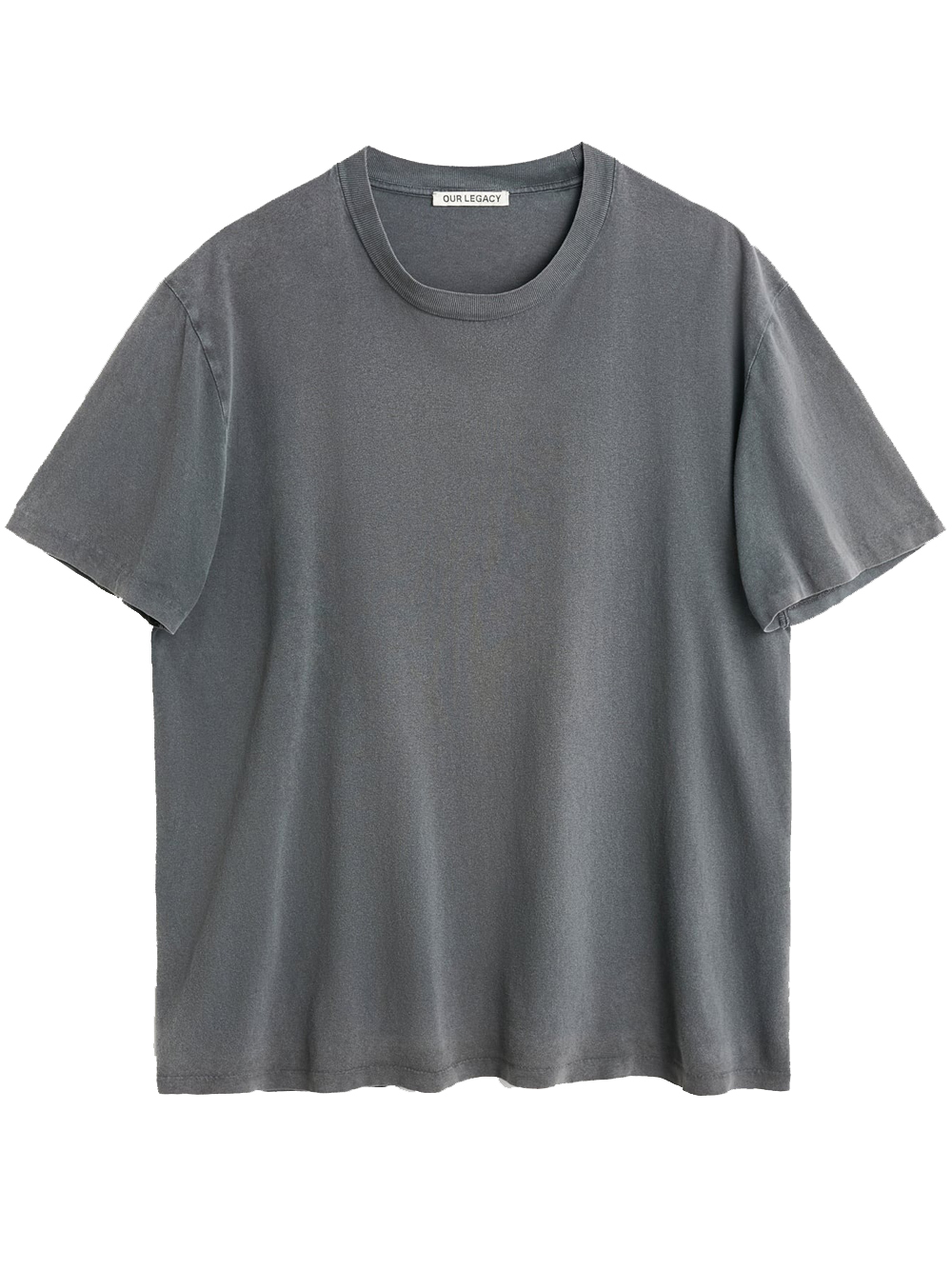 Gray cotton T-shirt by Our Legacy with crew neck, short sleeves, ribbed trim, boxy fit, and straight hem.