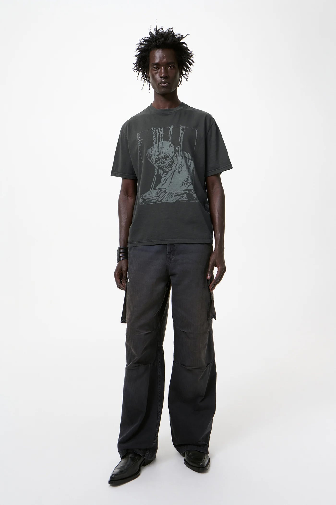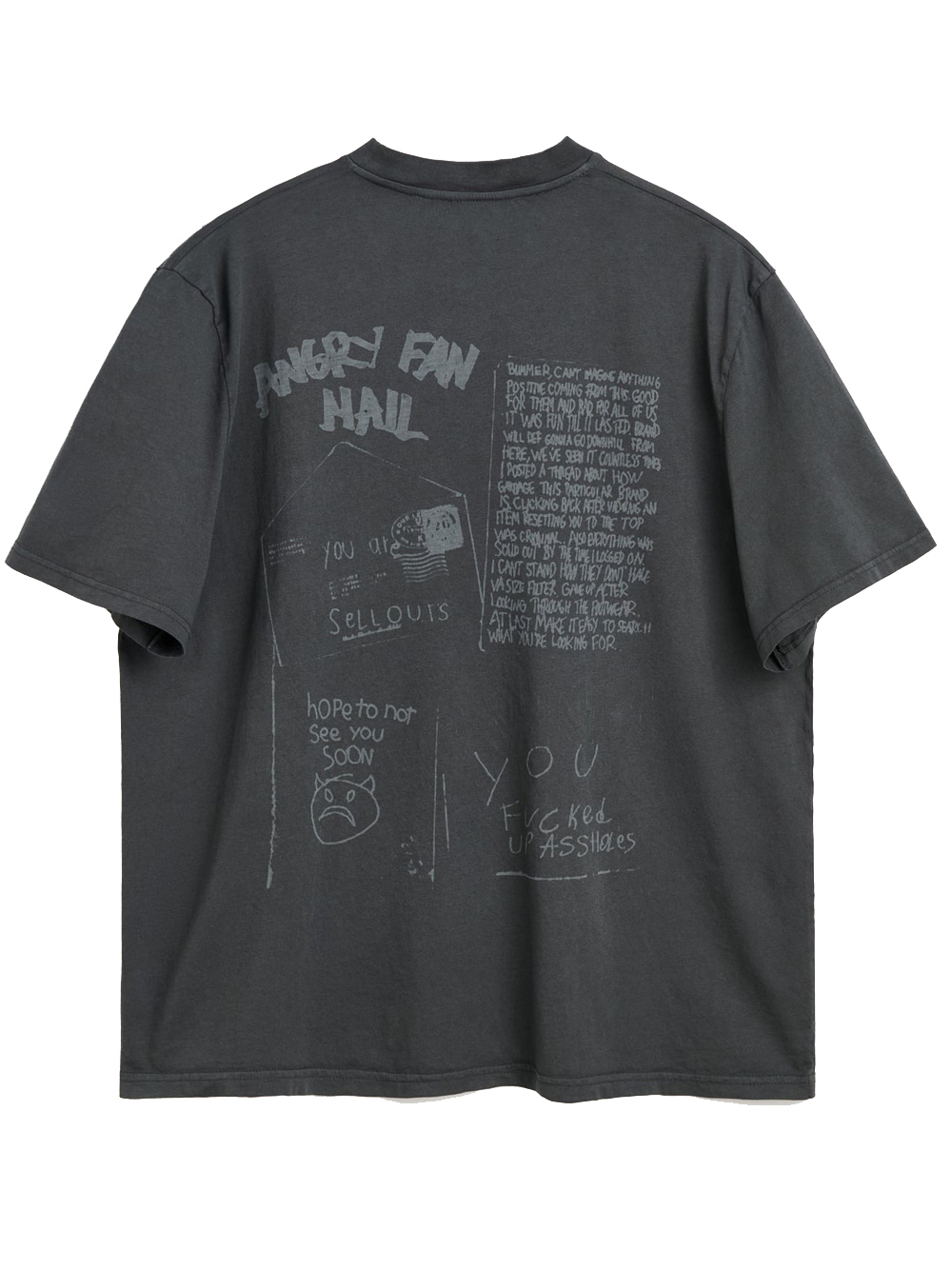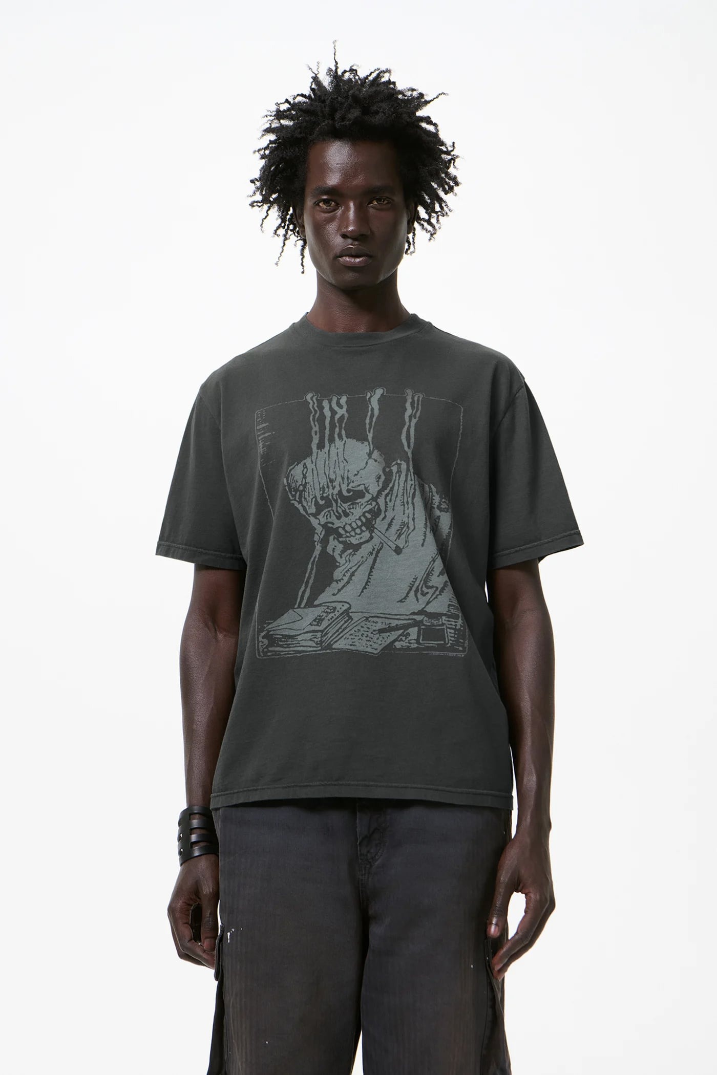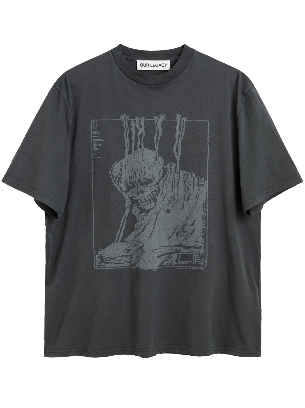 Gray cotton T-shirt by Our Legacy with crew neck, short sleeves, front and back print, boxy fit, and straight hem.