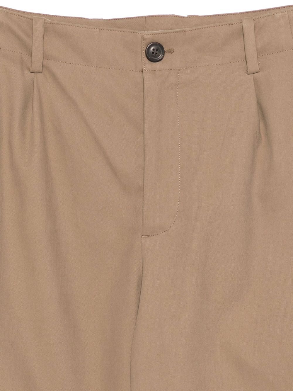Our Legacy Bridge Chino khaki pants in cotton with belt loops, button closure, YKK zipper, two front welt pockets, two back welt pockets, and pleats to shape the silhouette.