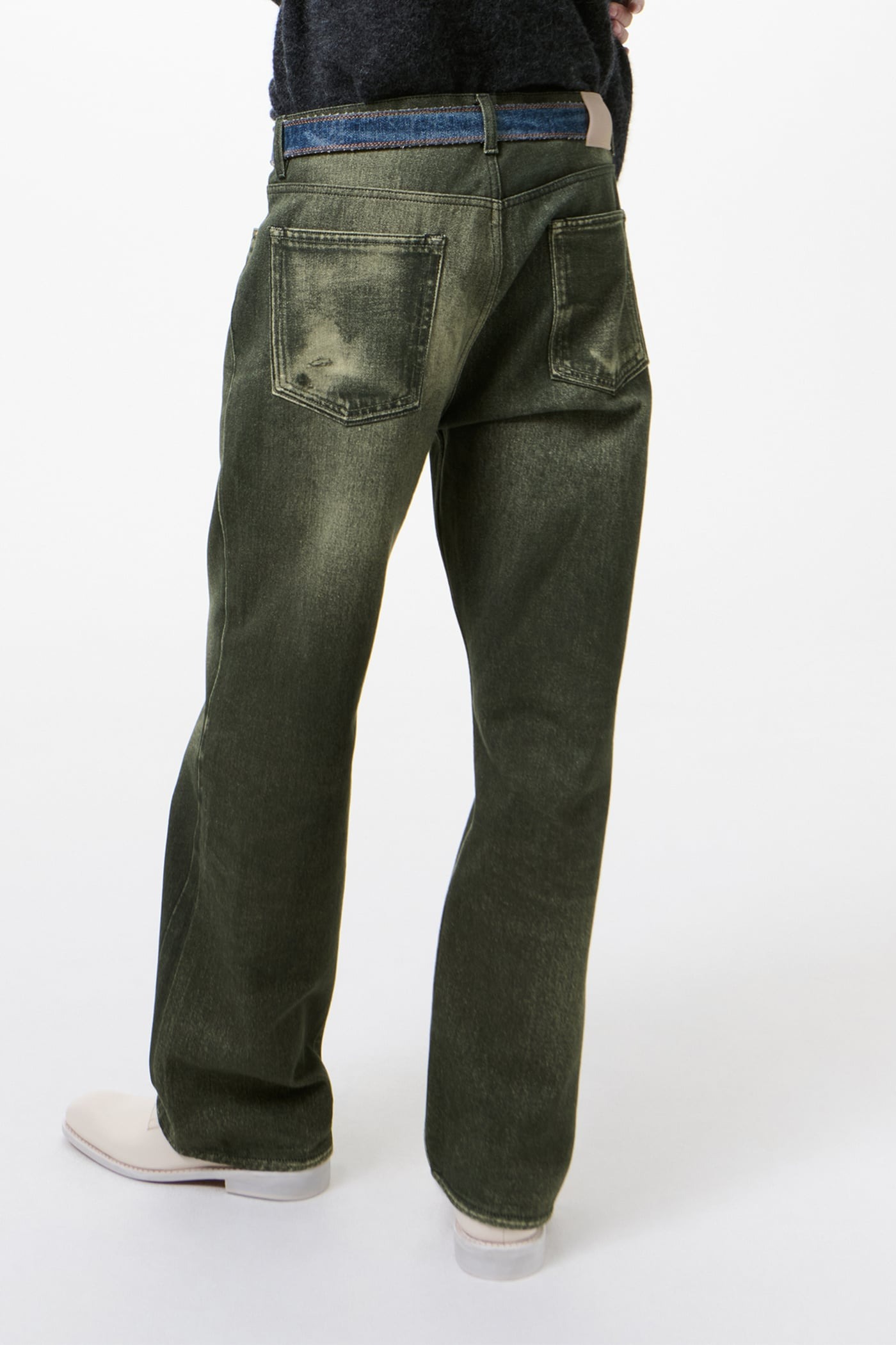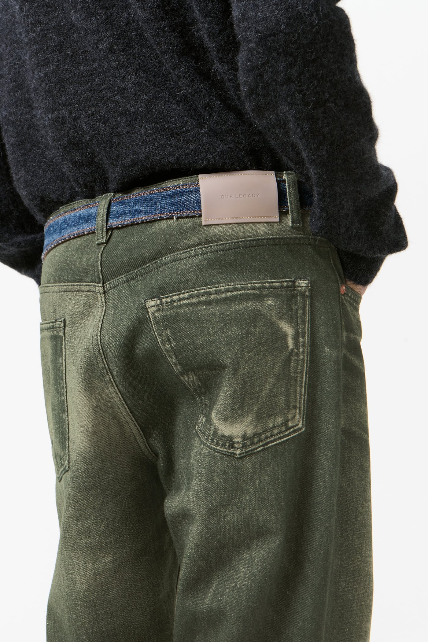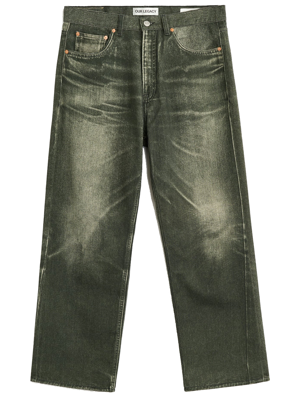 Black Third Cut jeans by Our Legacy in cotton with trompe l'oeil print, distressed finish, logo appliqué on the back, and high waist with belt loops.