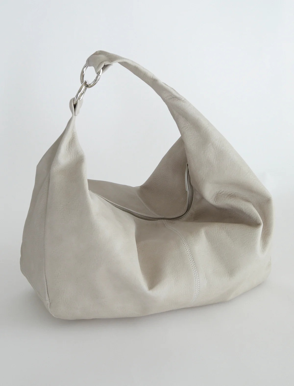 Big Dry ligWhite bag by Paloma Wool in leather with elongated shoulder strap, ring detail, and zip closure.