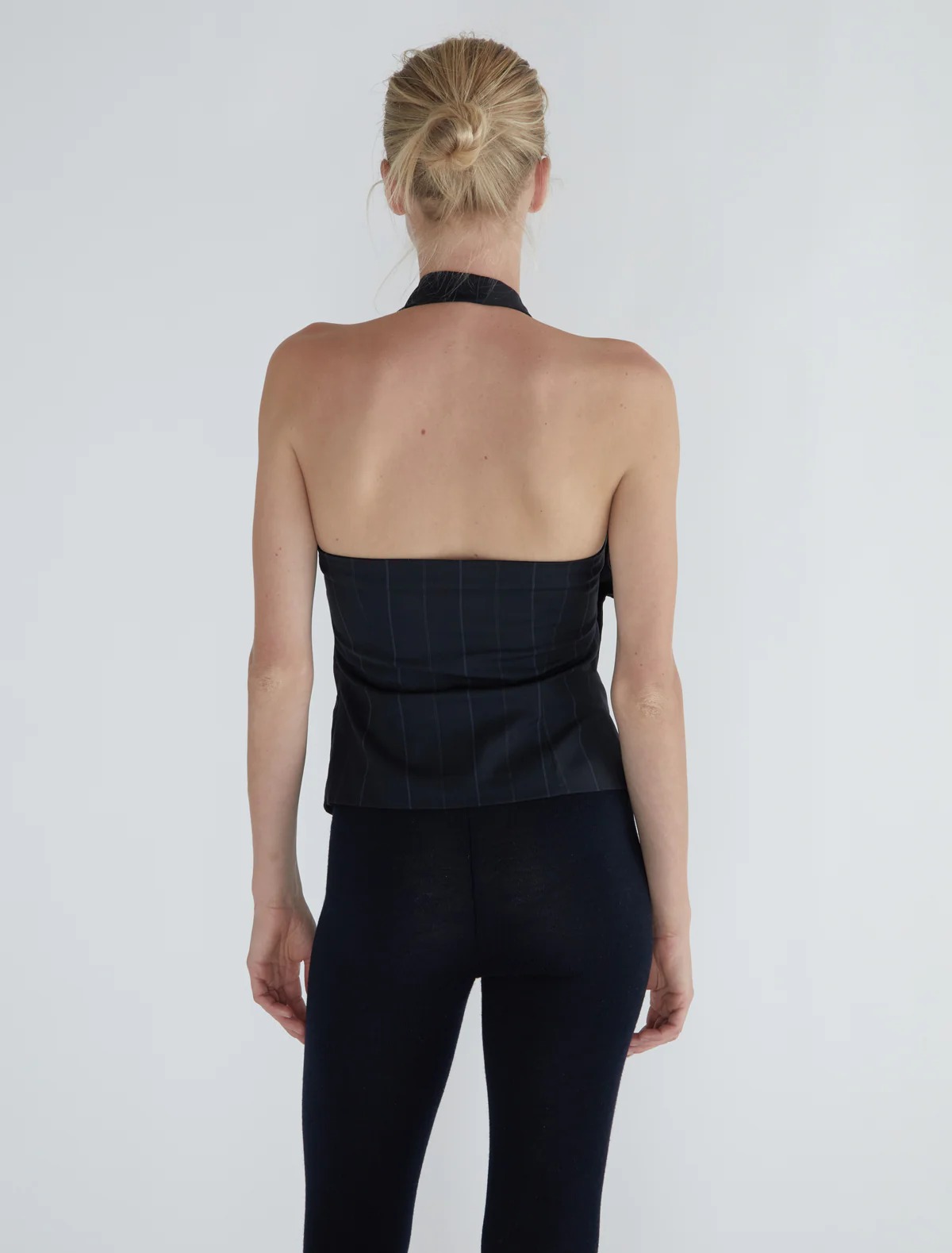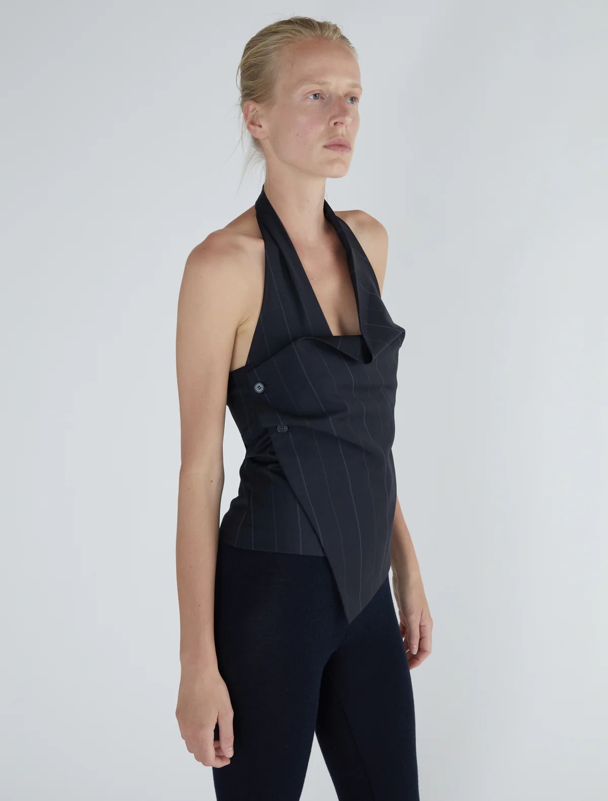 Tiomi blue top by Paloma Wool in Polyester with draped fabric neckline, two layers and buttons.