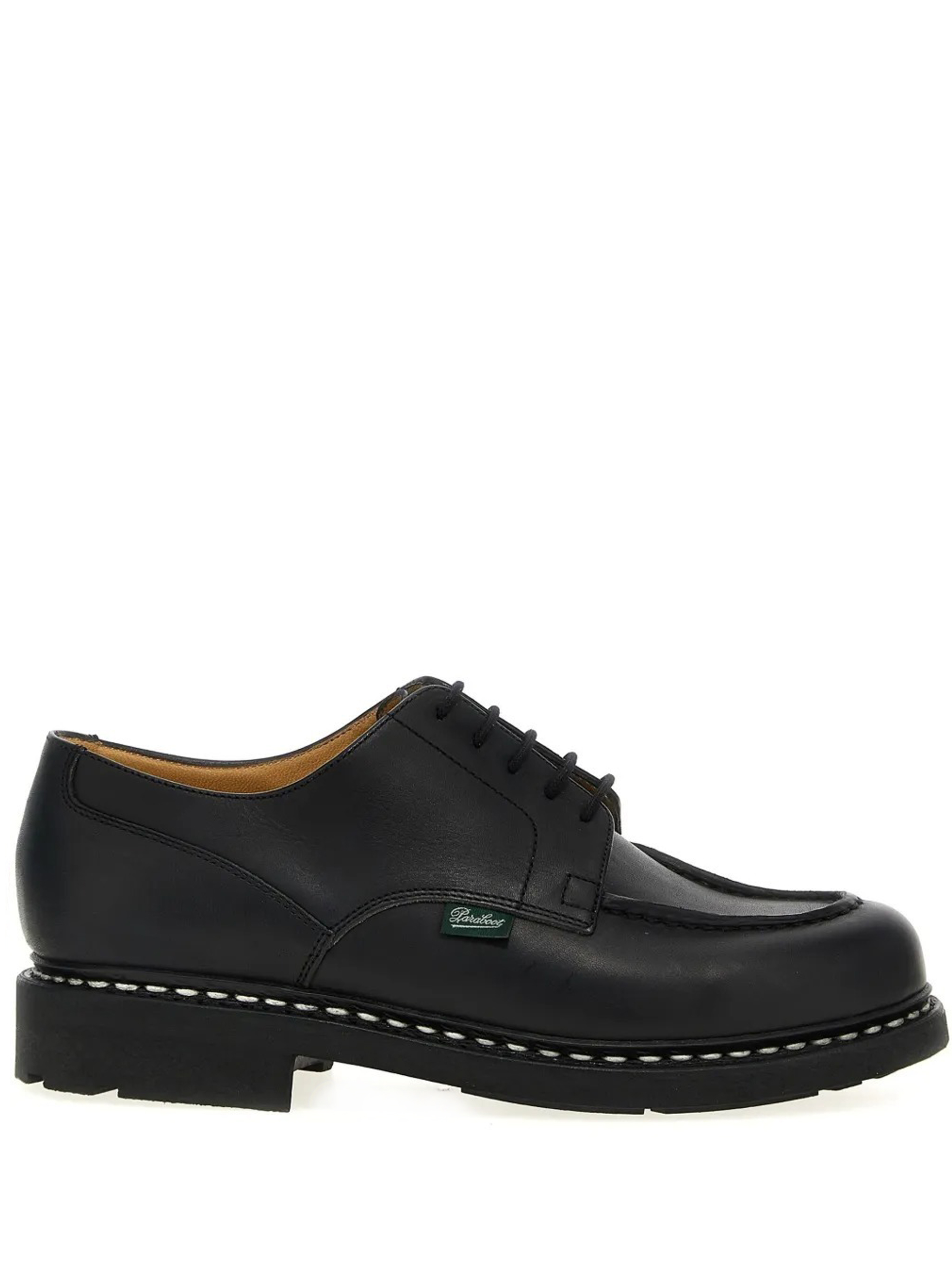 Chambord black lace-up shoes by Paraboot in leather with round toe, front closure with laces, and serrated rubber sole.