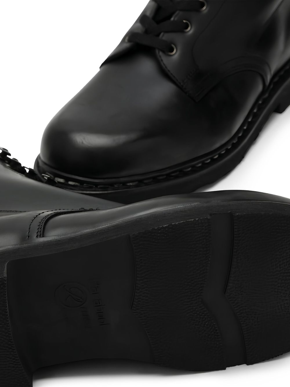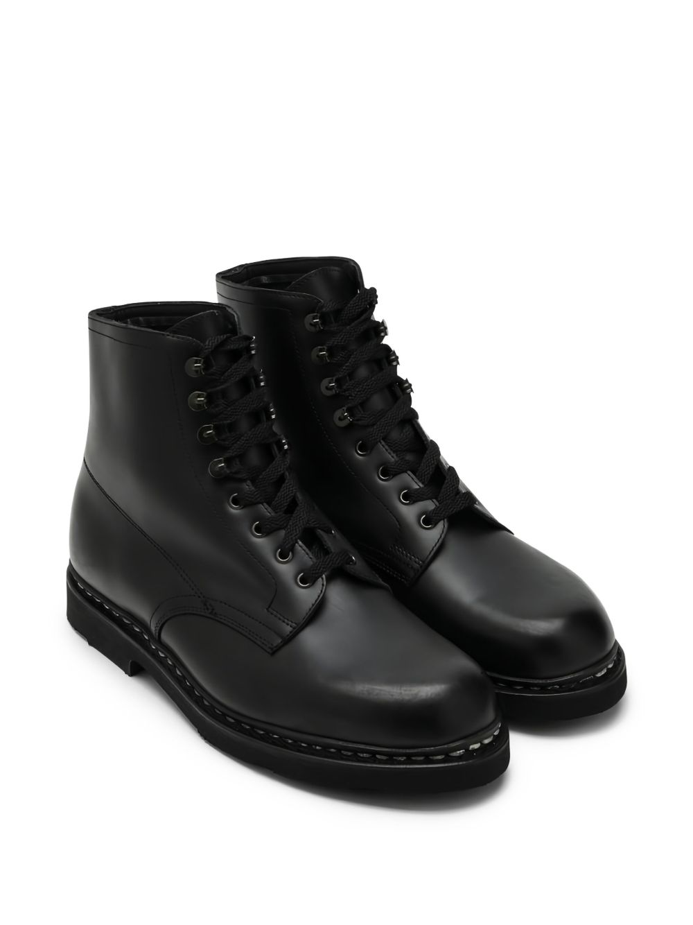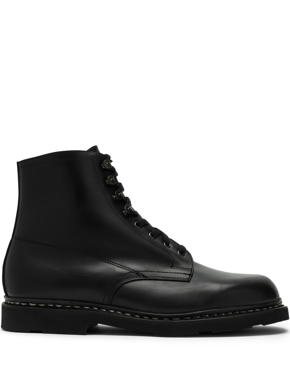 Black Imbattable leather lace-up ankle boots by Paraboot with round toe, a lace-up front closure and a notched rubber sole.