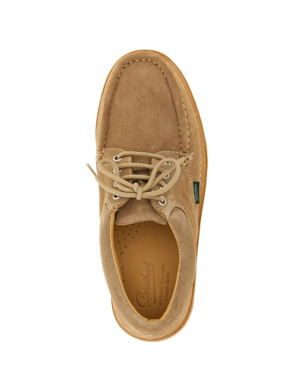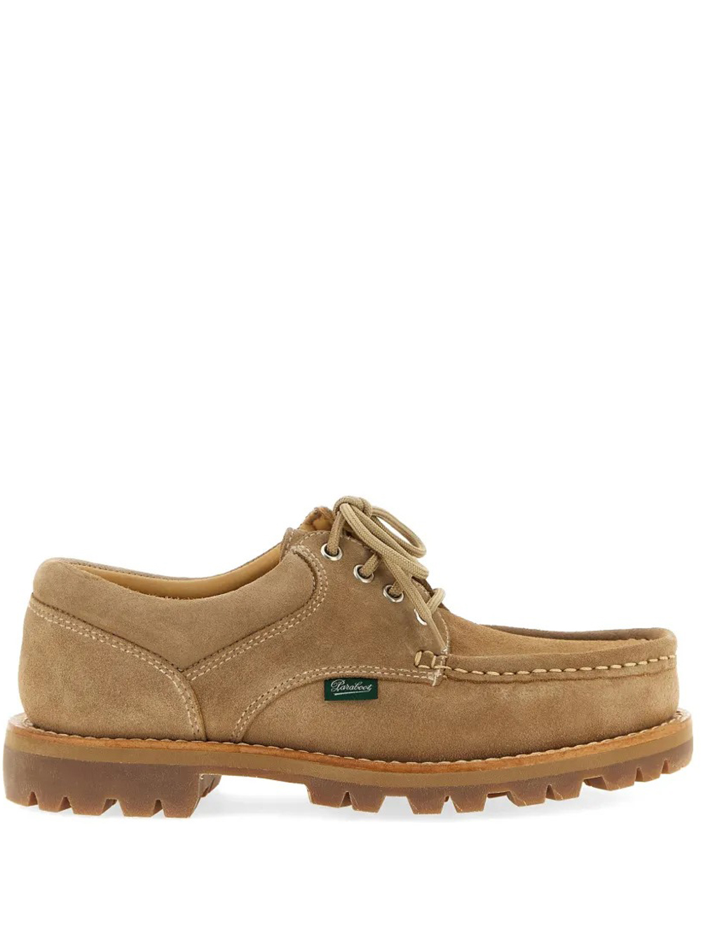 Paraboot Thiers honey-colored lace-up derbies in leather with a padded ankle collar, leather lining, lace-up closure, Blake stitching, and a round toe.