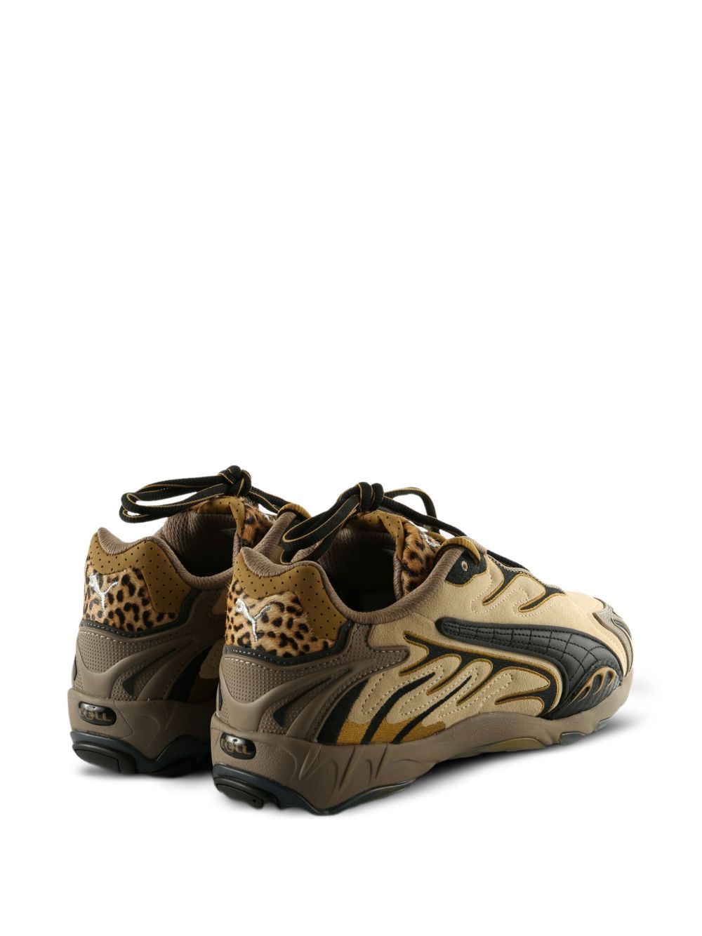 Beige Inhale sneakers by Puma x A$ap Rocky in fabric with round toe, front lace-up closure, animal print, and rubber sole.