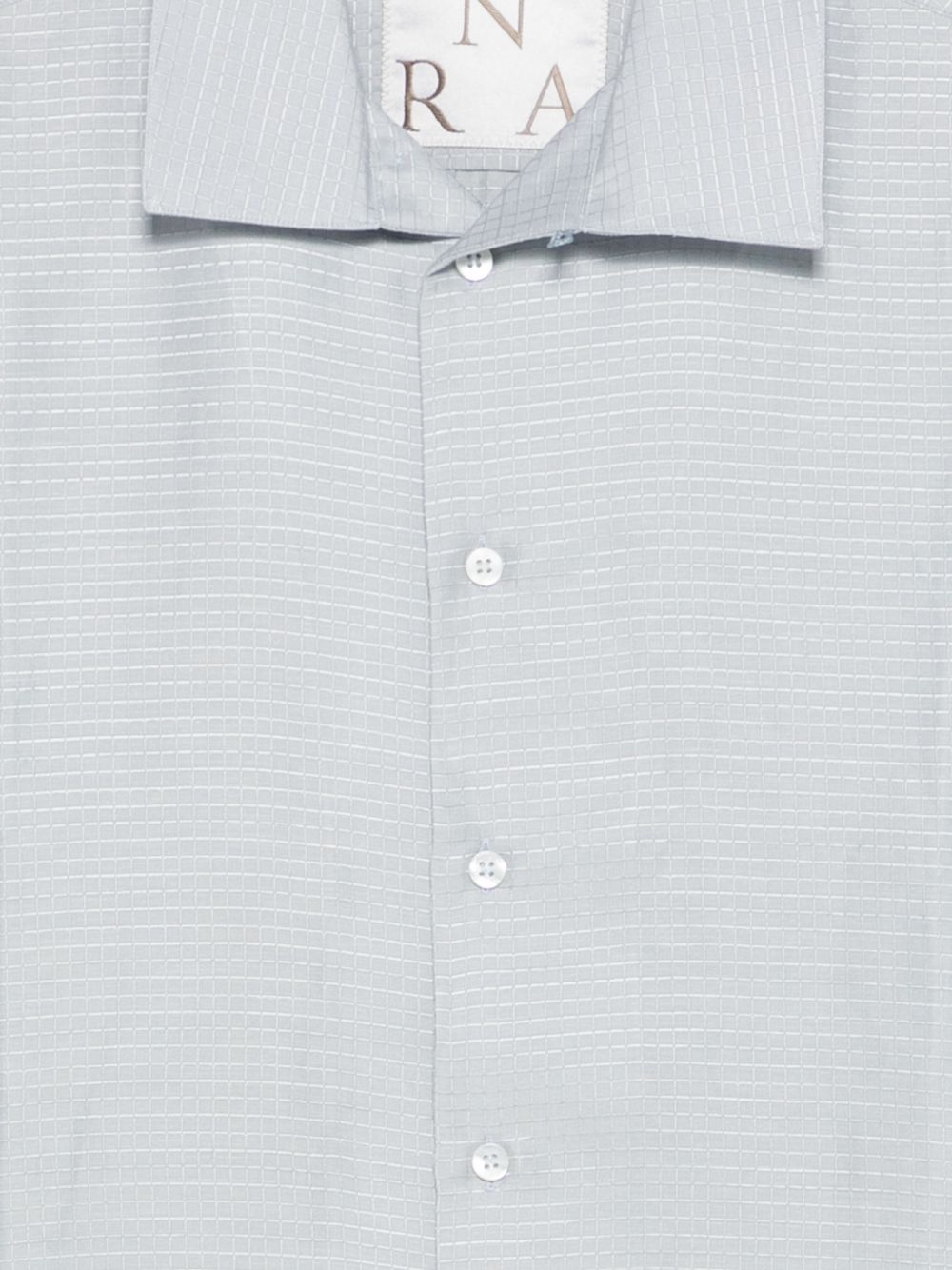 Ranra "Sun" light blue cotton shirt with a striped pattern, button closure, and short sleeves.