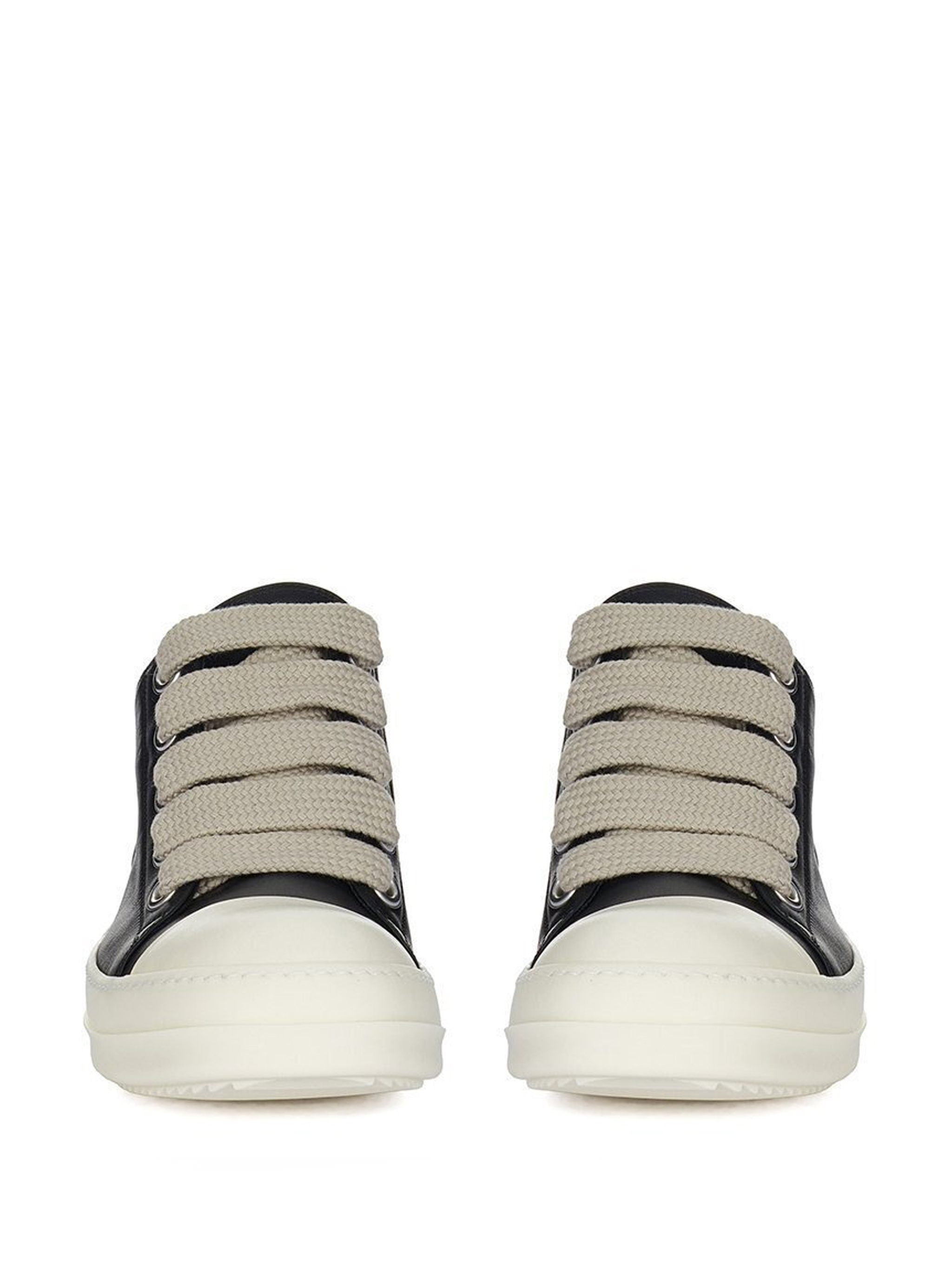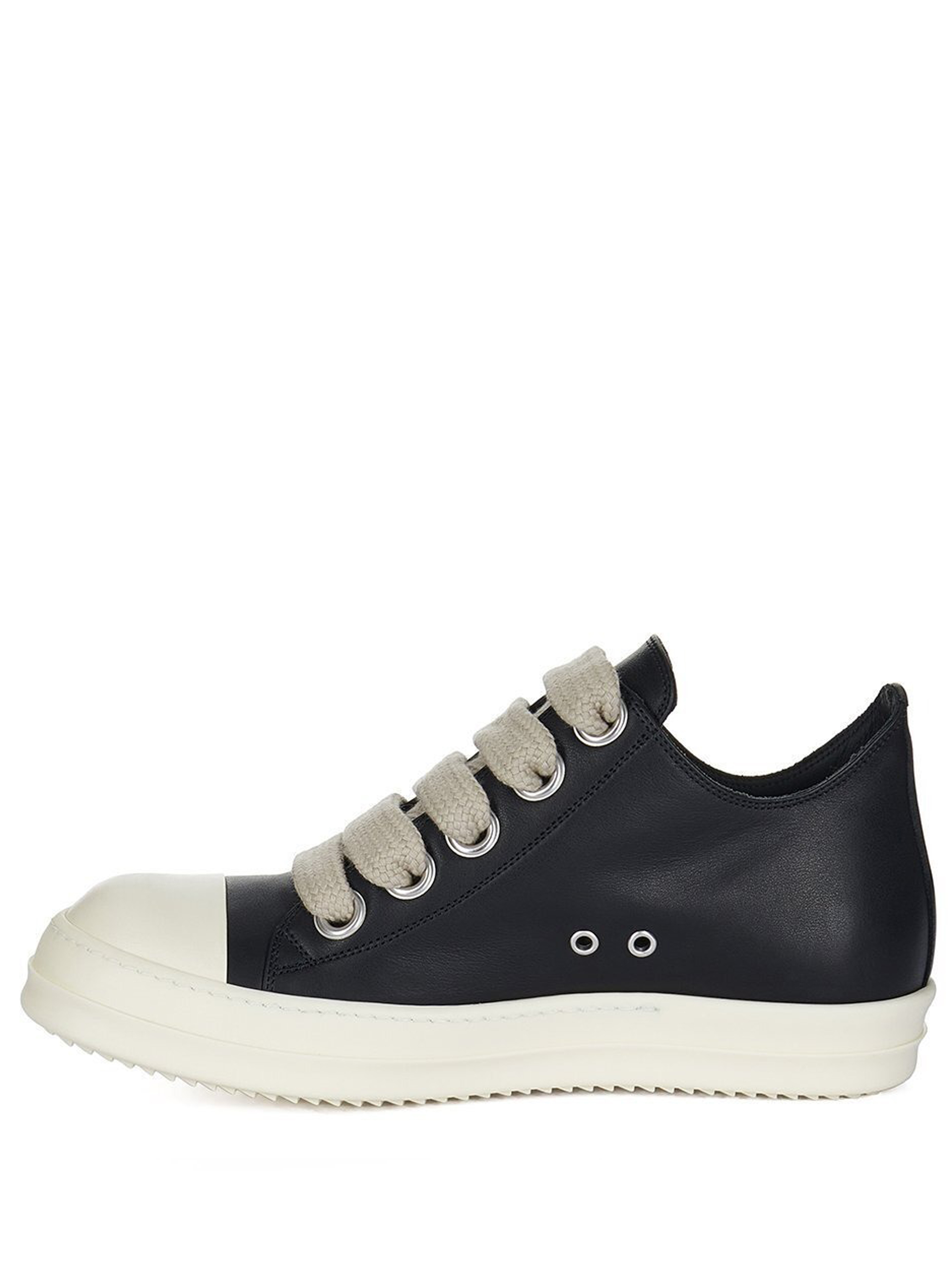 Black Jumbolace Low Sneaks from Rick Owens leather with round toe, fat lace-up closure and rubber sole.