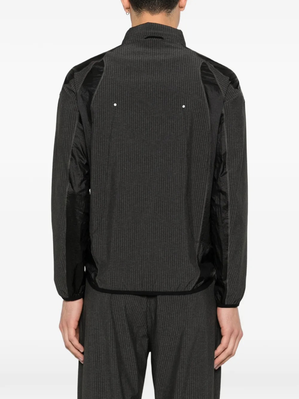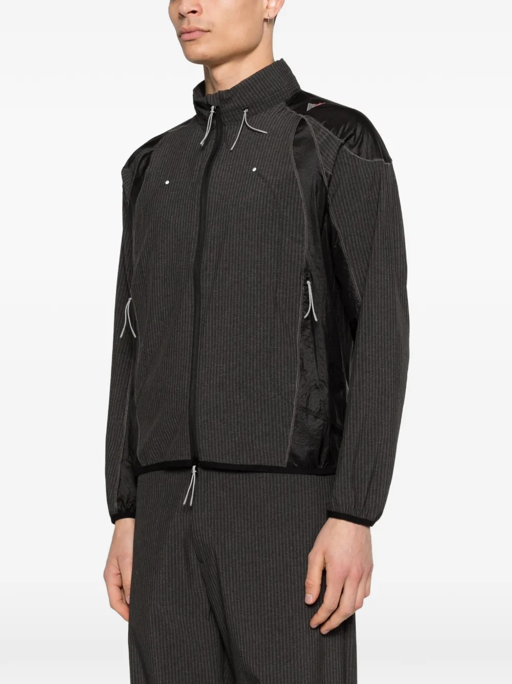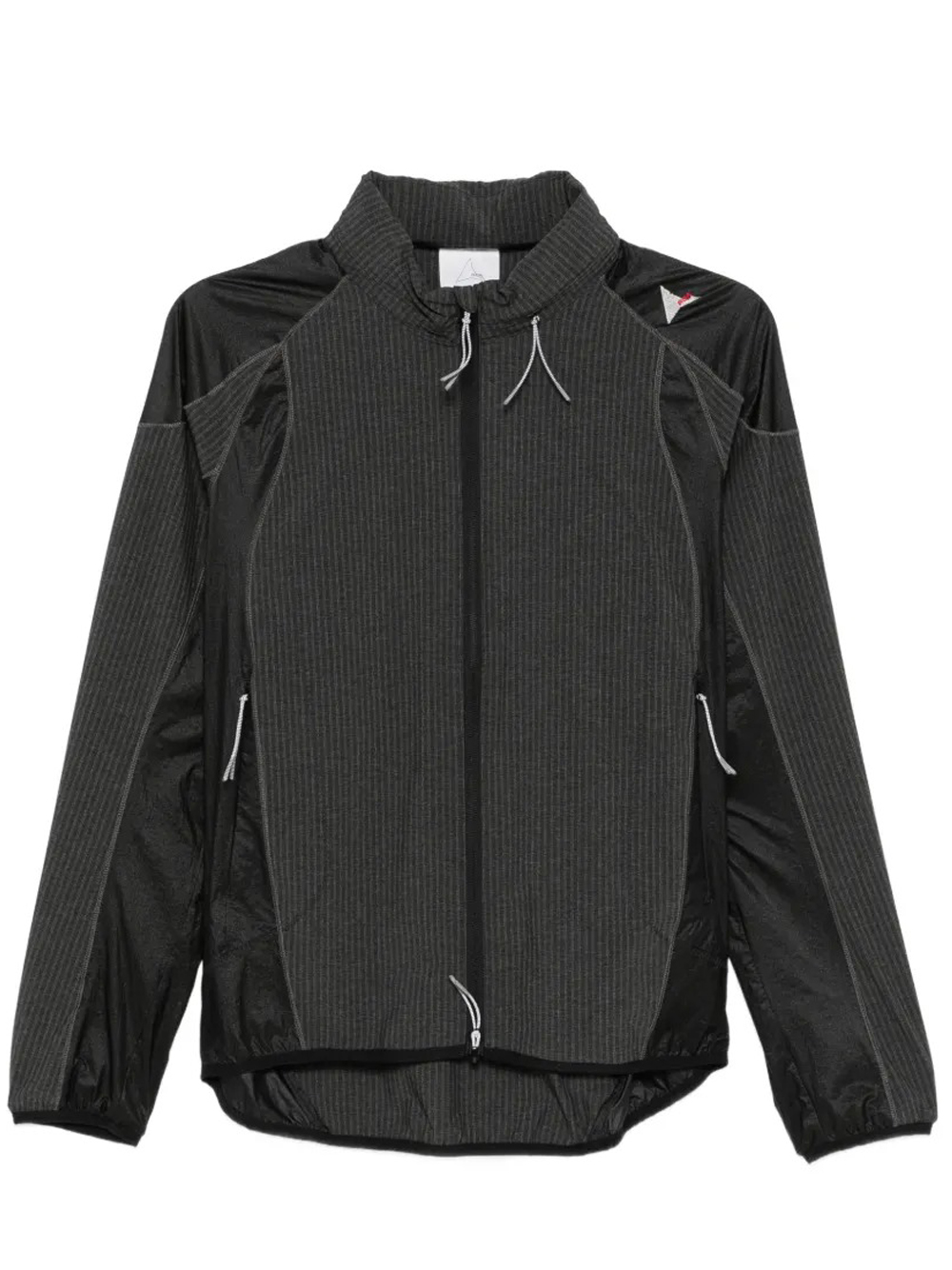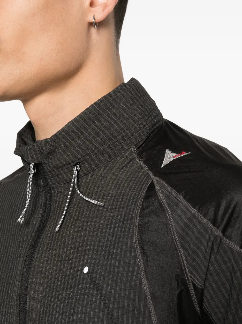 Giacca a vento nera Numb Printstriped Hood di roa in nylon con design a righe, chiusura con zip, tasche laterali con zip, girocollo e maniche lunghe.