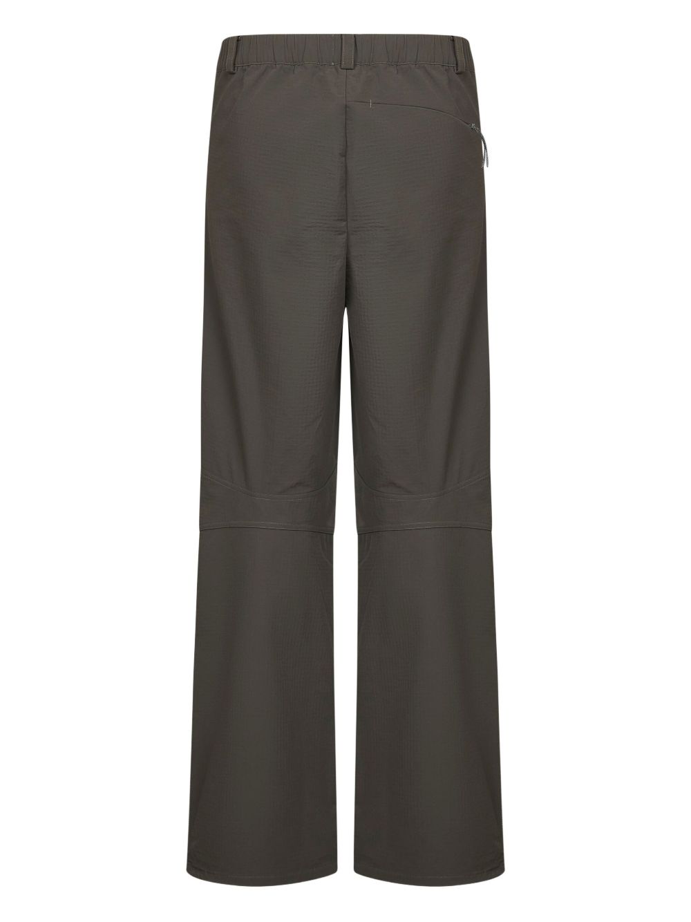 Roa Tambo Shaped Softshell olive green pants in polyamide with elastic waistband, front button closure, round front pockets, back pocket with zipper, and adjustable hem.