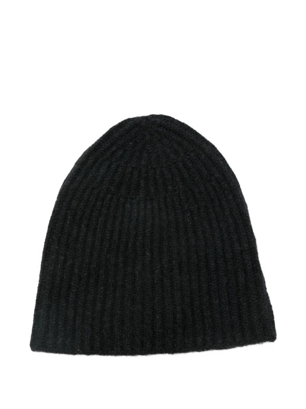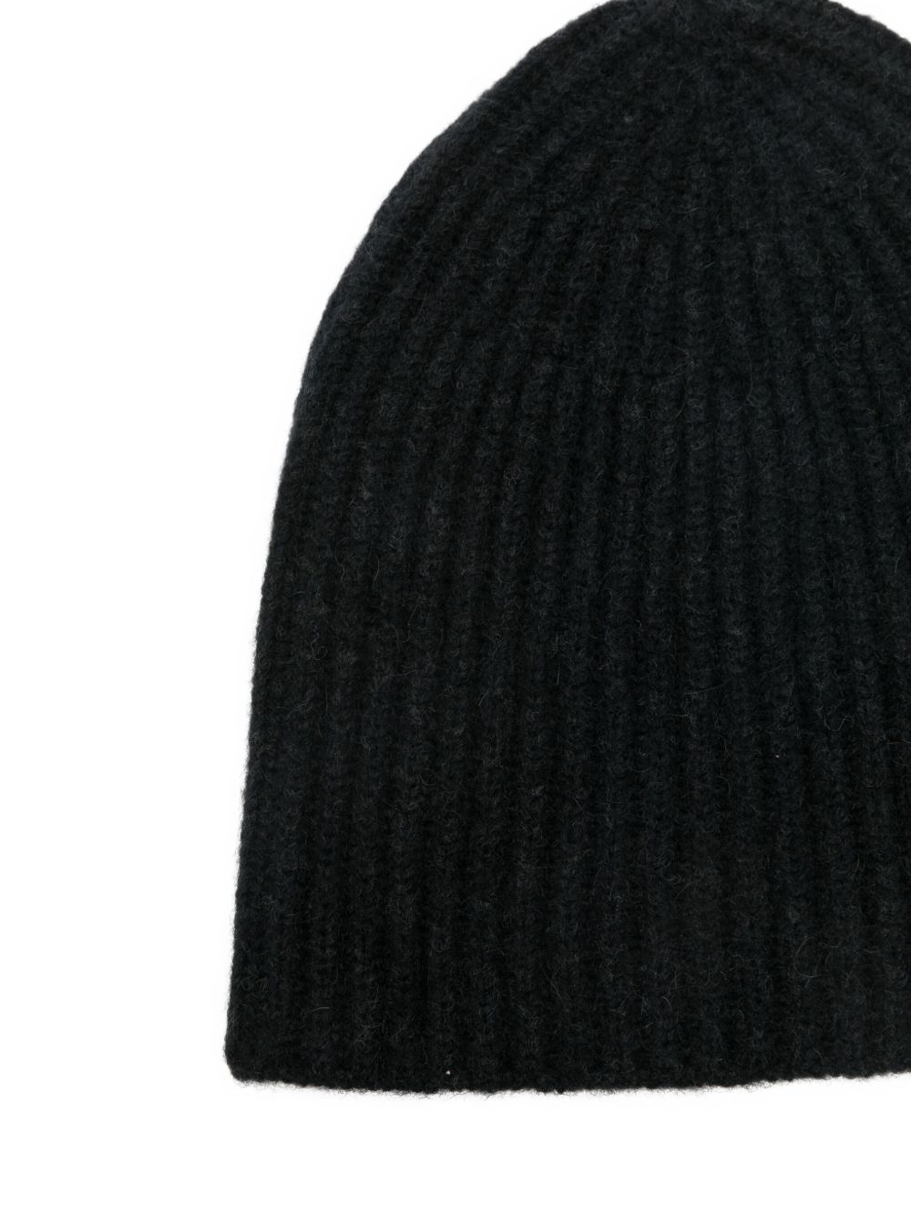 Black wool beanie hat by Roberto Collina with ribbed design and brushed finish.