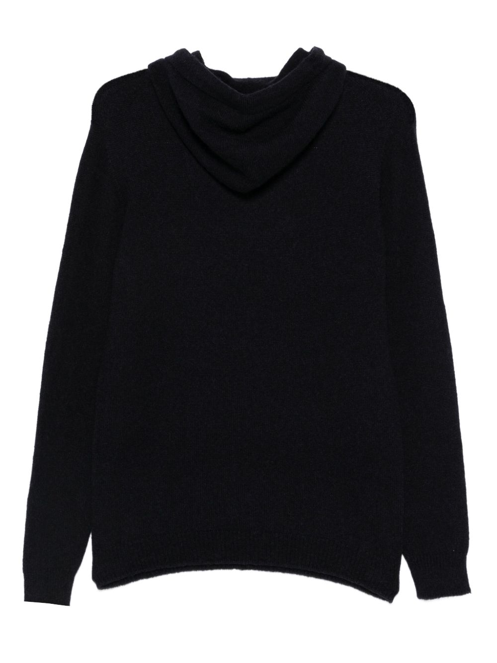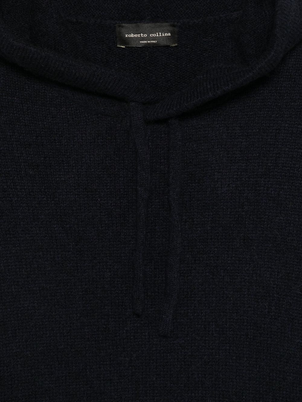 Navy blue Roberto Collina wool sweatshirt with hood, long sleeves, ribbed hem, and ribbed cuffs.