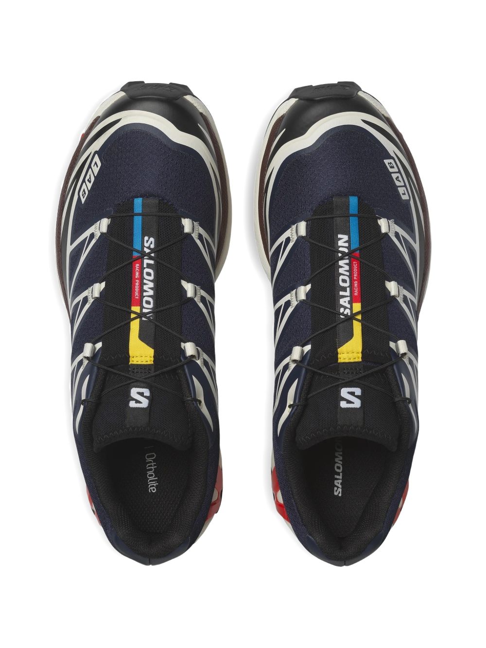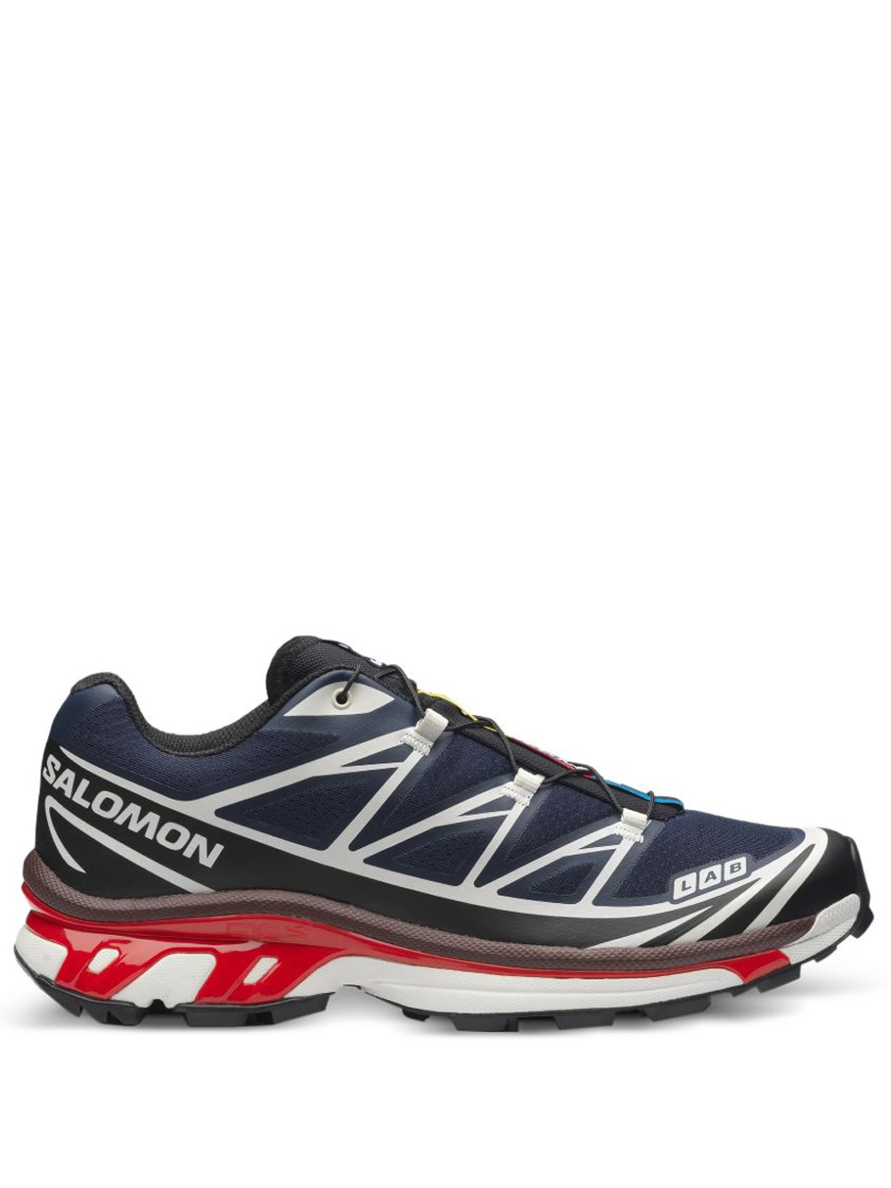 Salomon XT-6 blue sneakers in fabric with heat-sealed details, drawstring closure, round toe, fabric lining, and textured rubber sole. The design is completed by the logo label on the tongue and the logo printed on the side.
